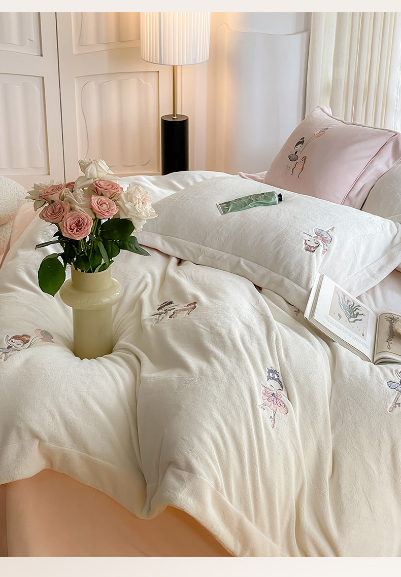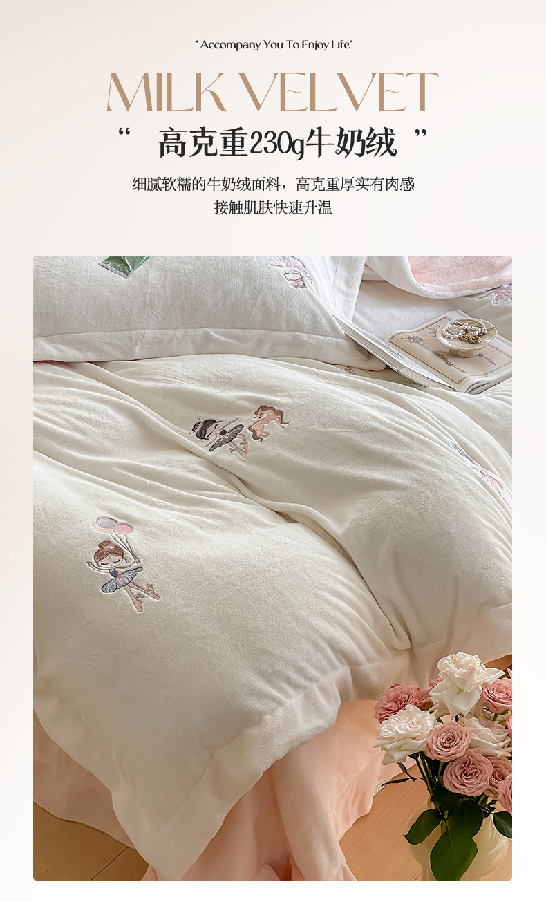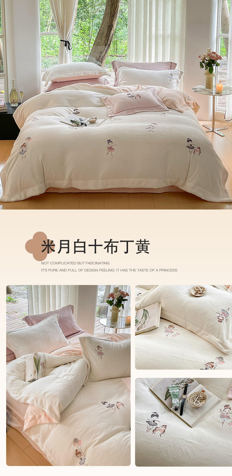 当前位置: 91家纺网 > 商品网购 > 床品套件 > 四件套 > 牛奶绒四件套 > 名品优仓 2023新款高克重牛奶绒绣花四件套-芭蕾仙子 芭蕾仙子-米月白十布丁黄