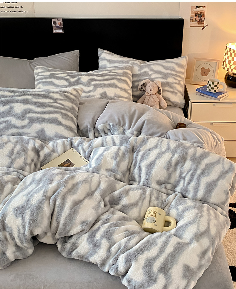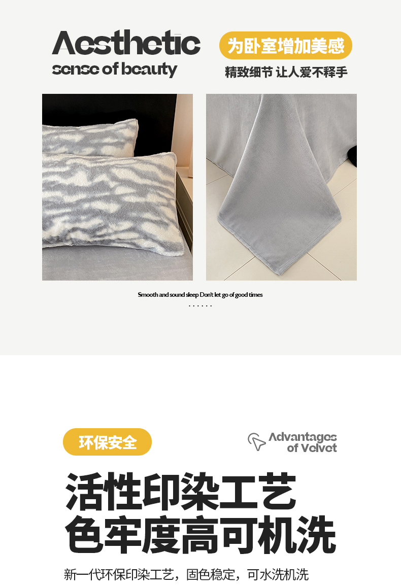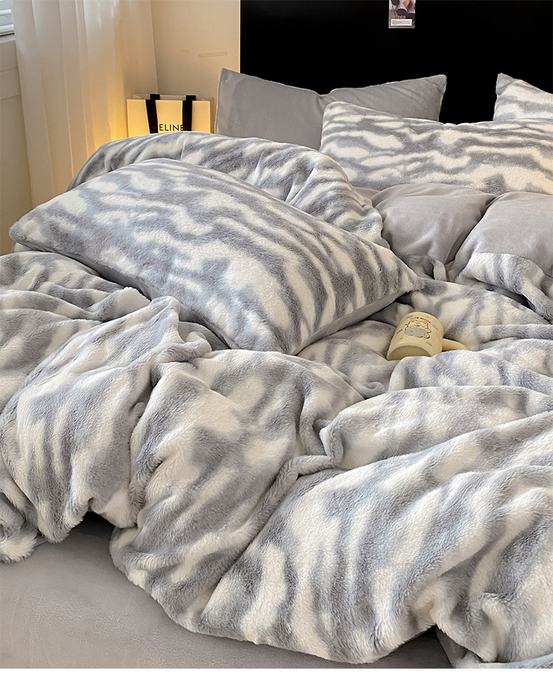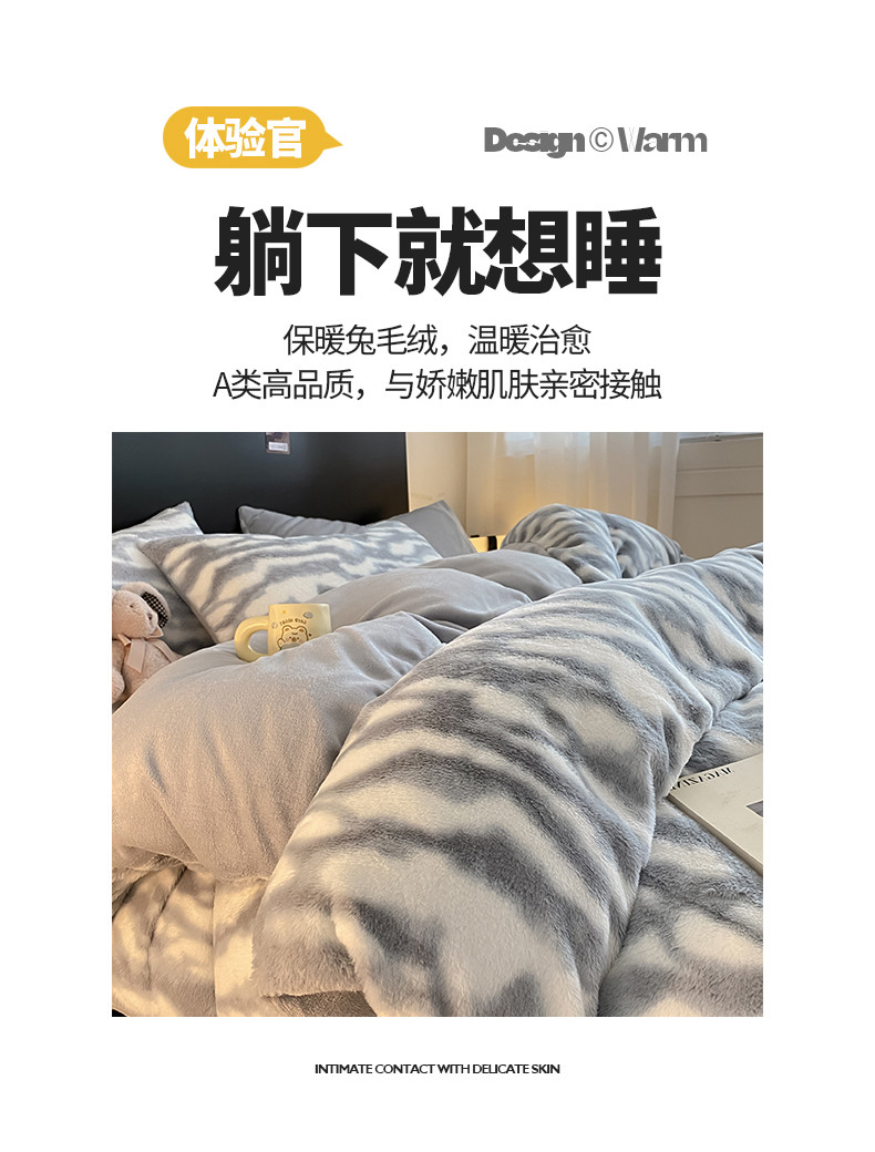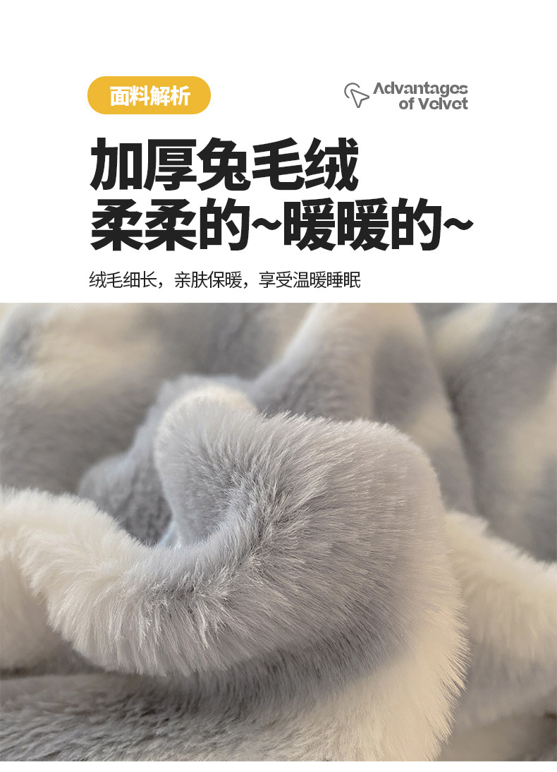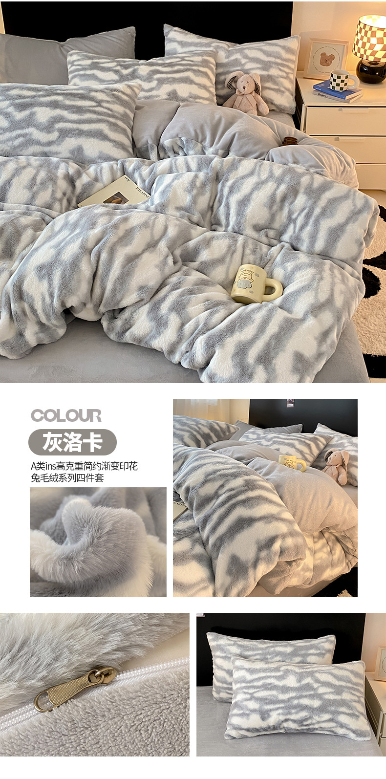 A类ins高克重320克简约渐变印花兔毛绒暖绒加厚牛奶绒系列四件套 绒兔毛-灰洛卡