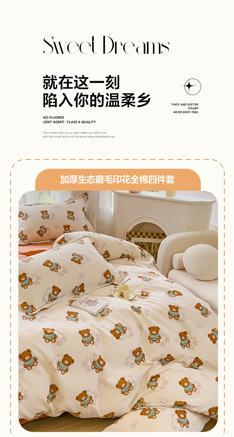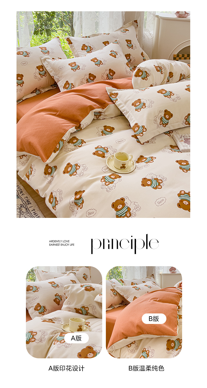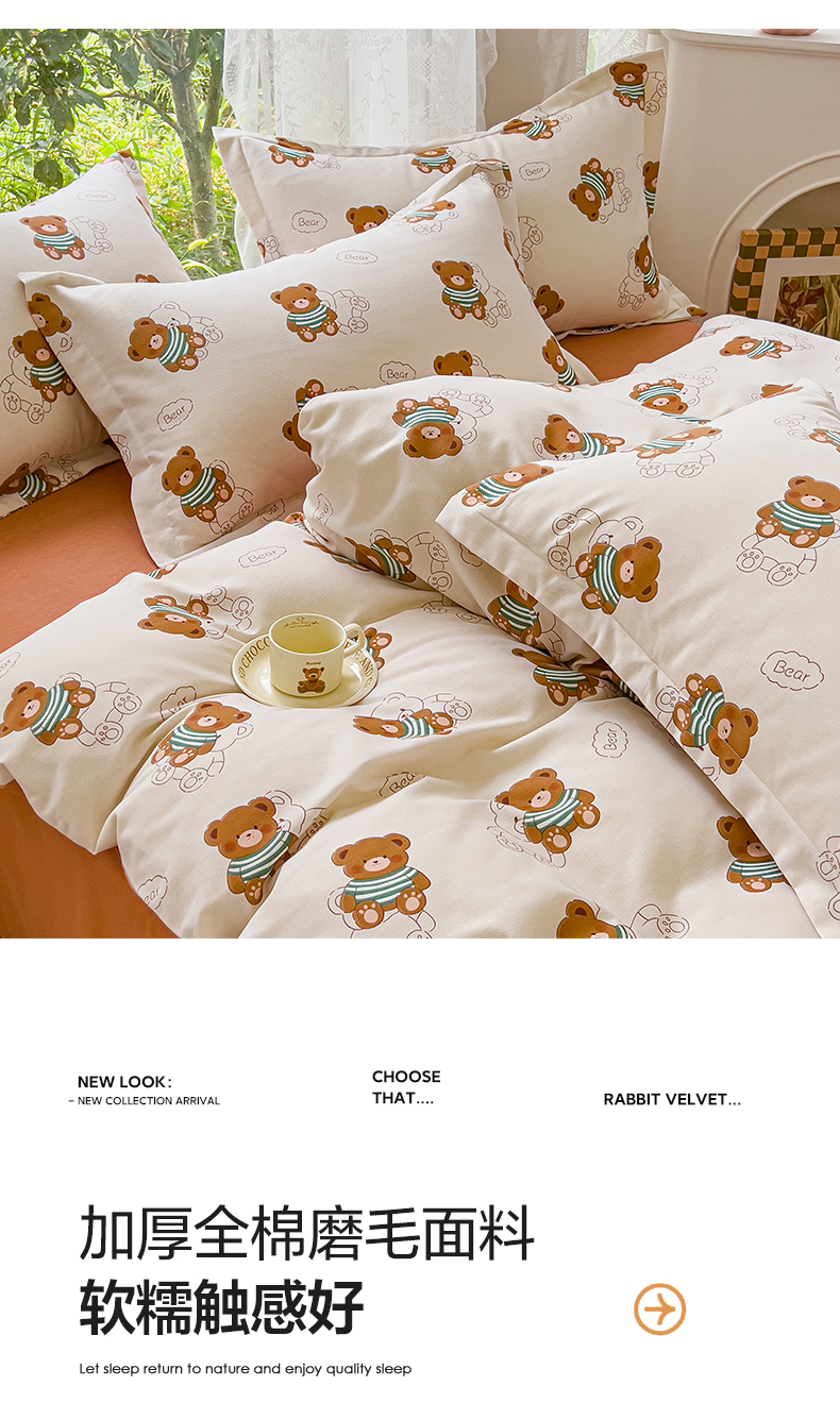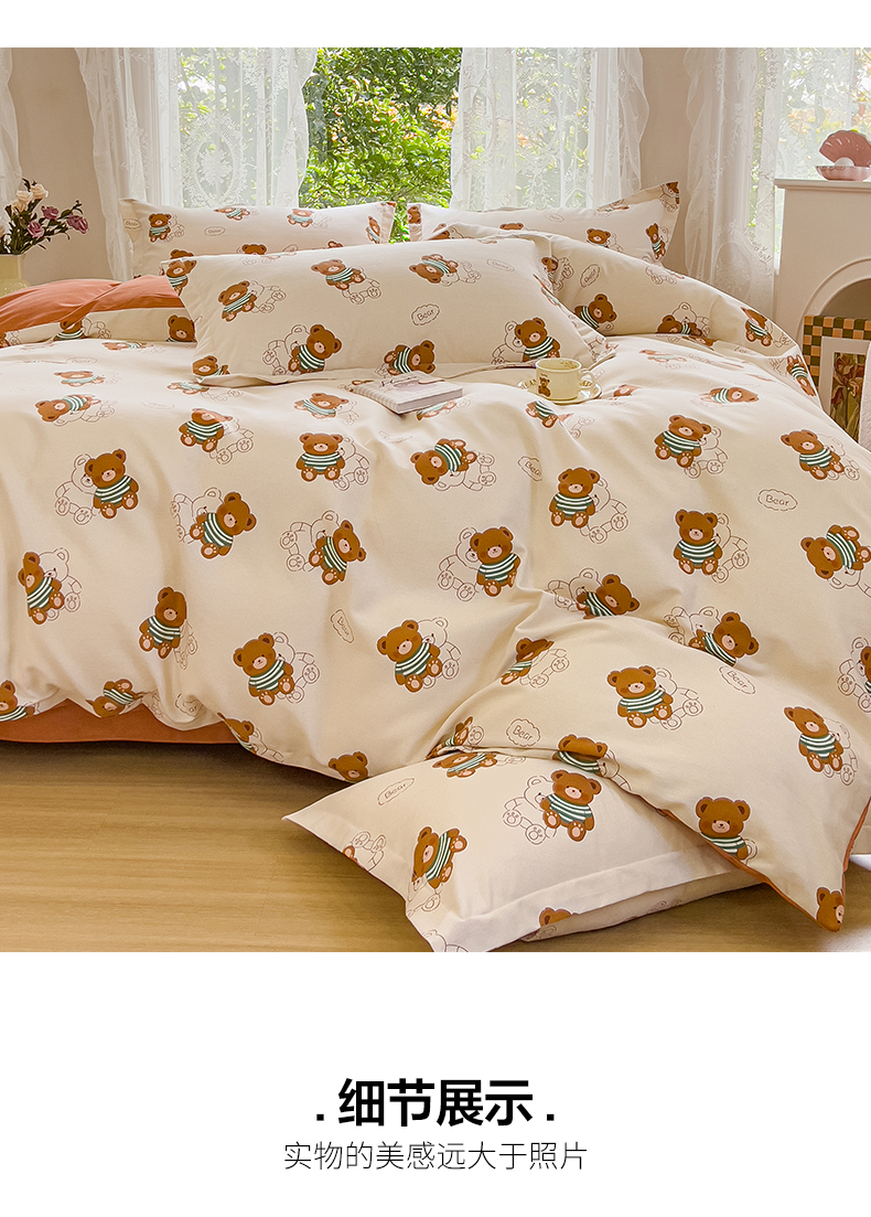 当前位置: 91家纺网 > 商品网购 > 床品套件 > 四件套 > 全棉普通四件套 > 伊而梦 2023新款小清新全棉磨毛印花四件套系列 小熊宝宝