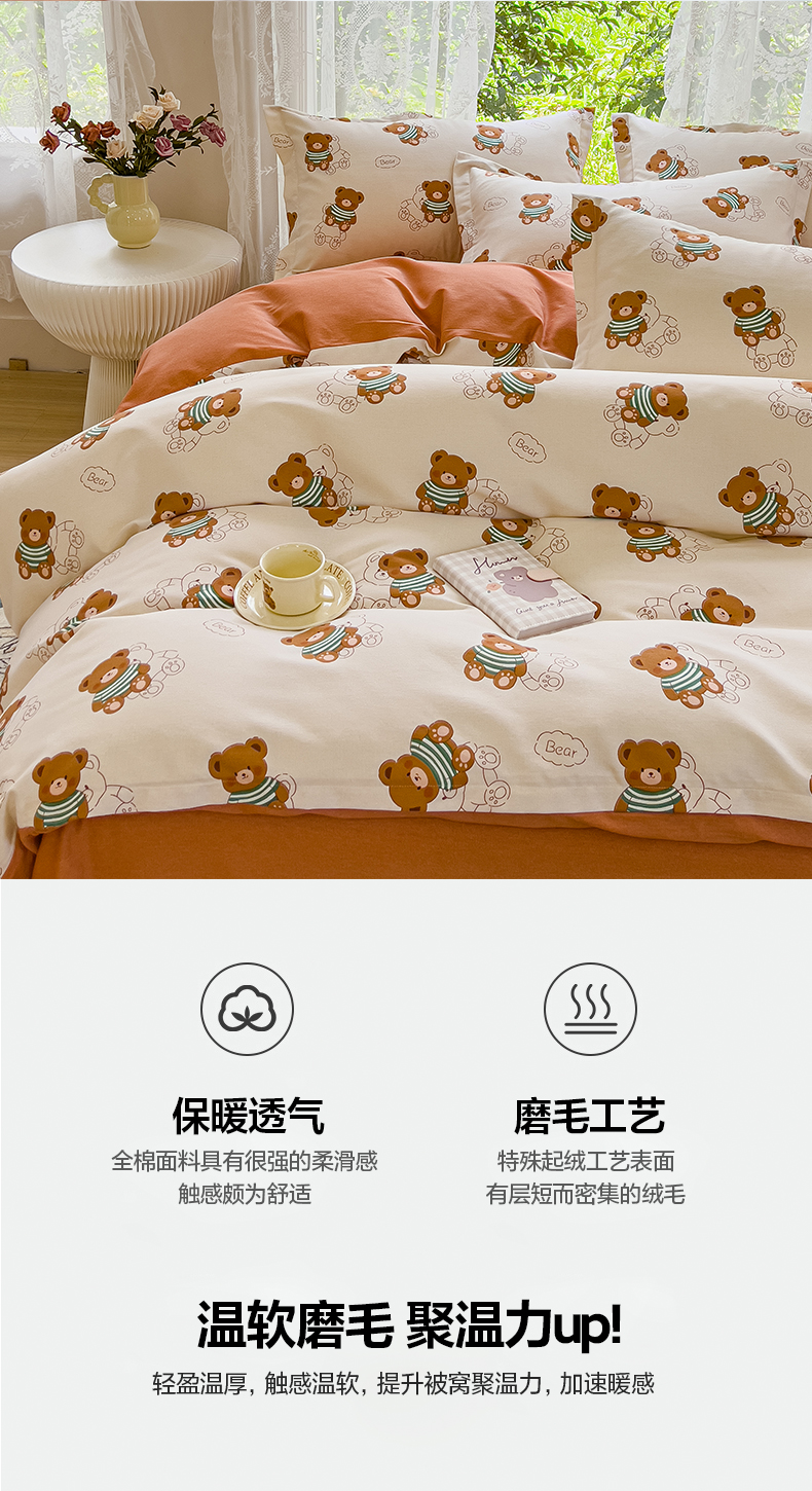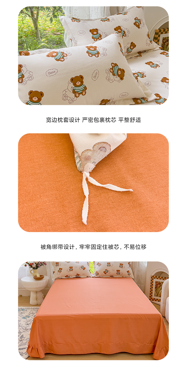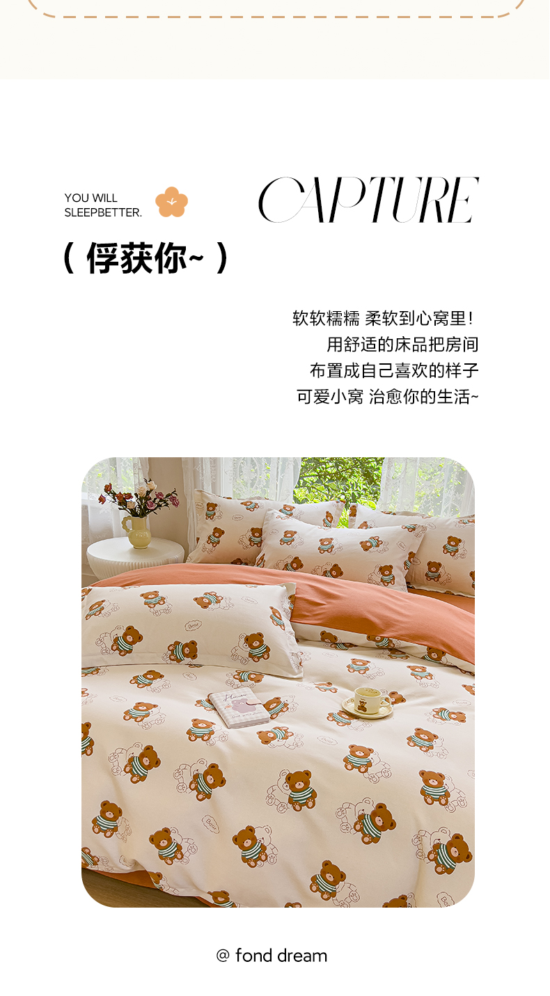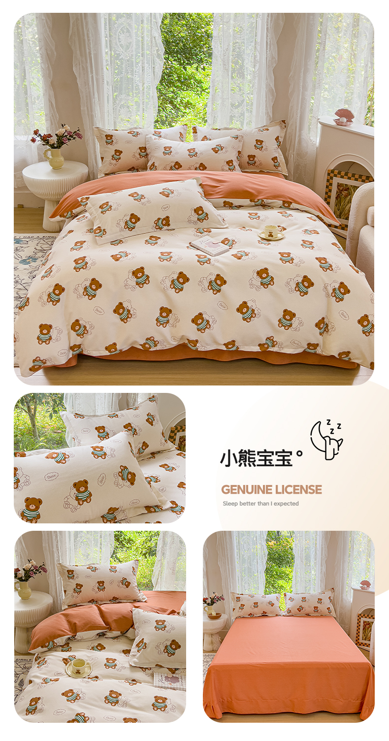 当前位置: 91家纺网 > 商品网购 > 床品套件 > 四件套 > 全棉普通四件套 > 伊而梦 2023新款小清新全棉磨毛印花四件套系列 小熊宝宝