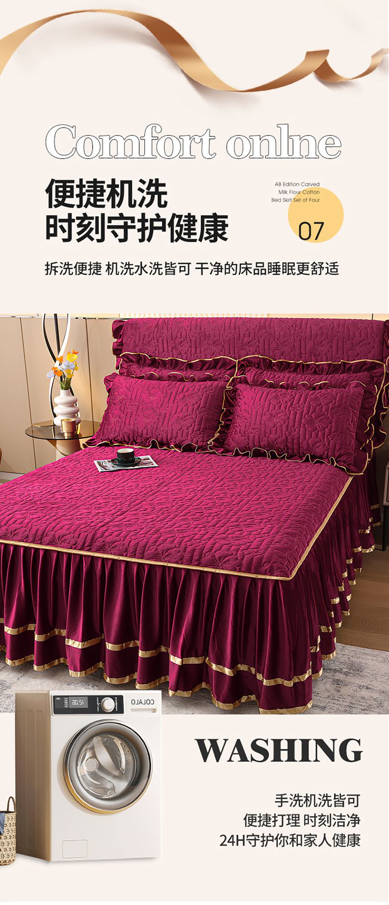 (总)屹成家纺 2025新款水洗棉单床裙 床裙单件-倾城(床裙单件控价118元起),倾城-大红,倾城-豆沙,倾城-粉玉,倾城-橄榄绿,倾城-卡其,倾城-浅紫,倾城-银灰