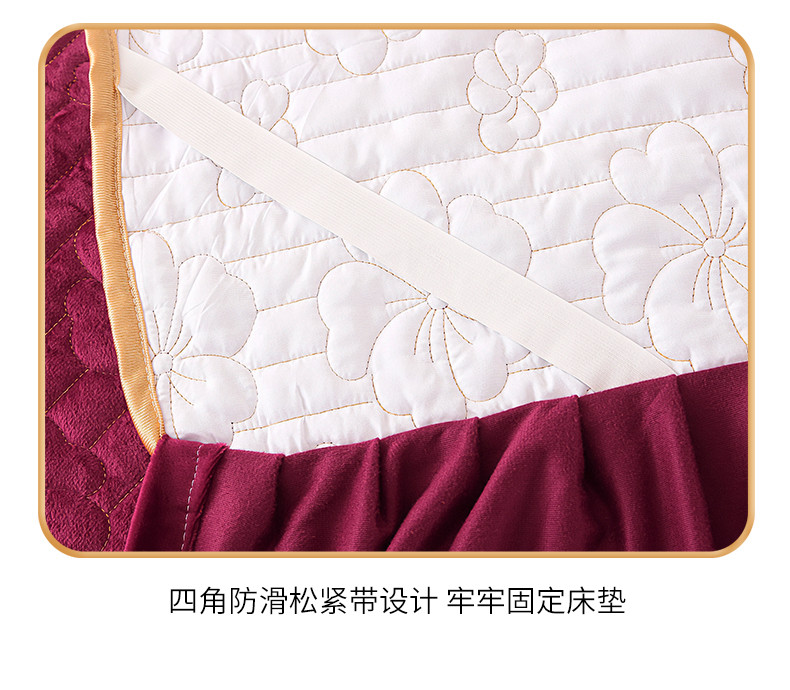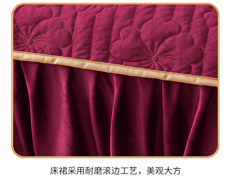 新款水晶绒加厚保暖单床裙-盛世花颜 盛世花颜-酒红