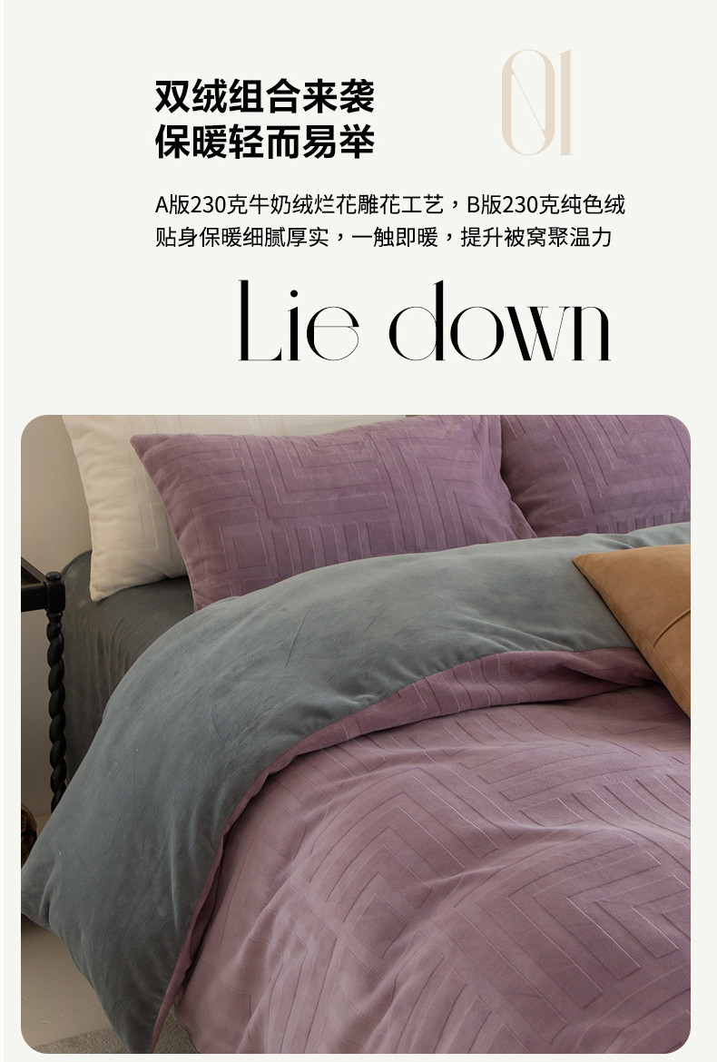 (总)ONE TWO ONE 121 2025秋冬新款纯色双拼兔毛绒牛奶绒床上用品被套床单枕套四件套被子床垫褥子被芯毛毯 (会员:-10元),安娜-粉昔,安娜-灰咖,安娜-雪白,安娜-云紫