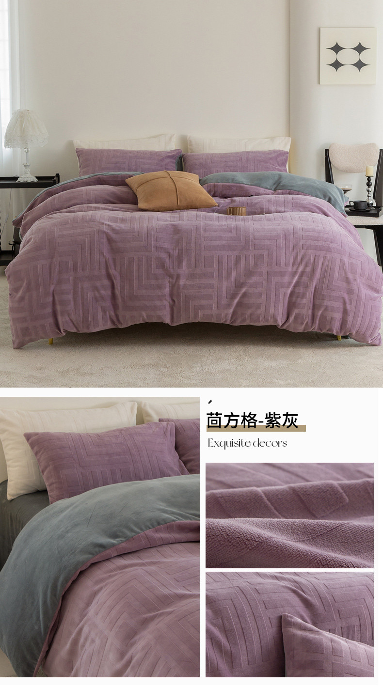 (总)ONE TWO ONE 121 【提供买家秀】【控价商品】2025新款提花婴儿绒四件套牛奶绒被套床单枕套毛毯被罩被子被芯床品控价 【卷后标准 268 加大 288 】会员-10,沉香-棕,沉香-灰