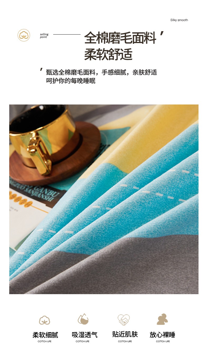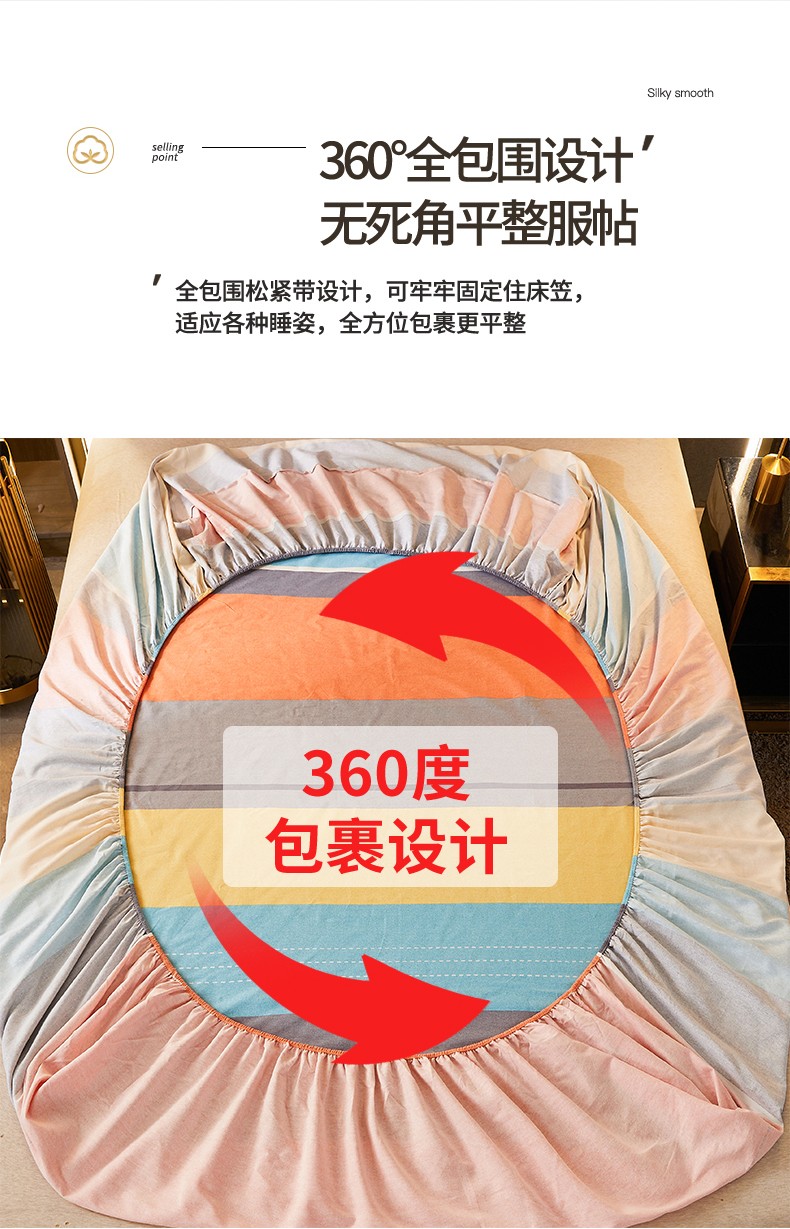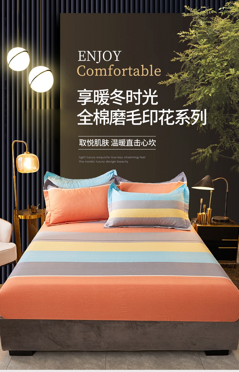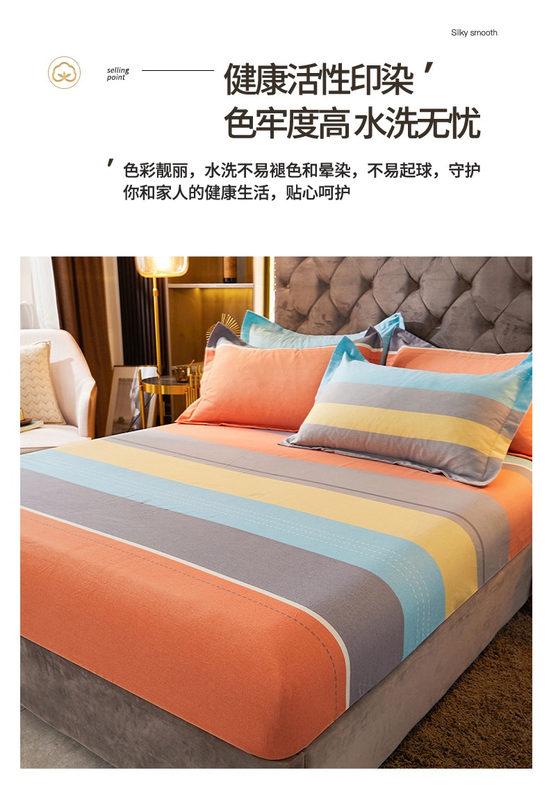 • 91家纺网 家纺一手货源 找家纺 伊而梦 2023新款全棉磨毛印花四件套系列单品床笠 线韵之美-桔