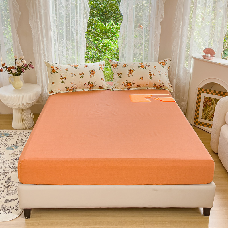 伊而梦 2023新款全棉磨毛印花四件套系列单品床笠 橘色
