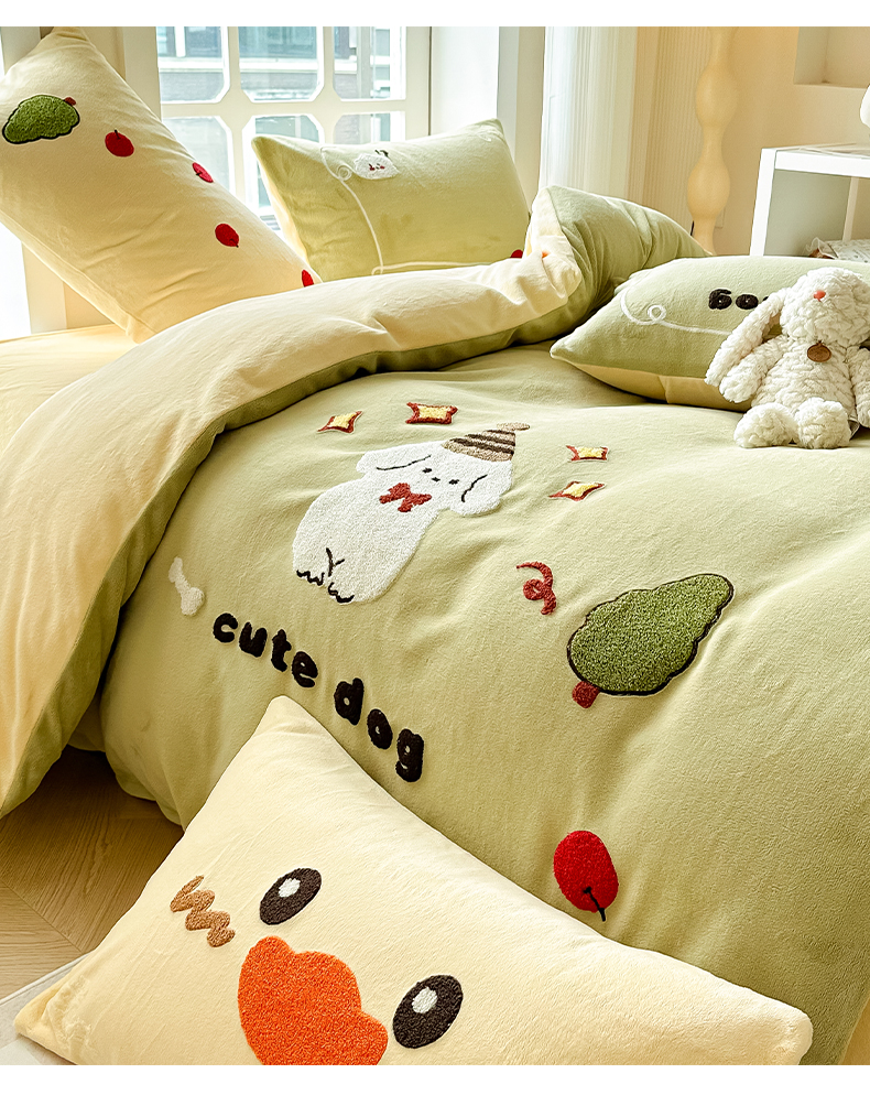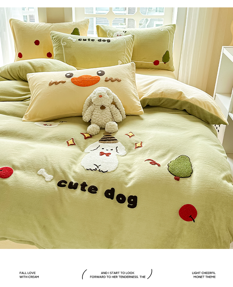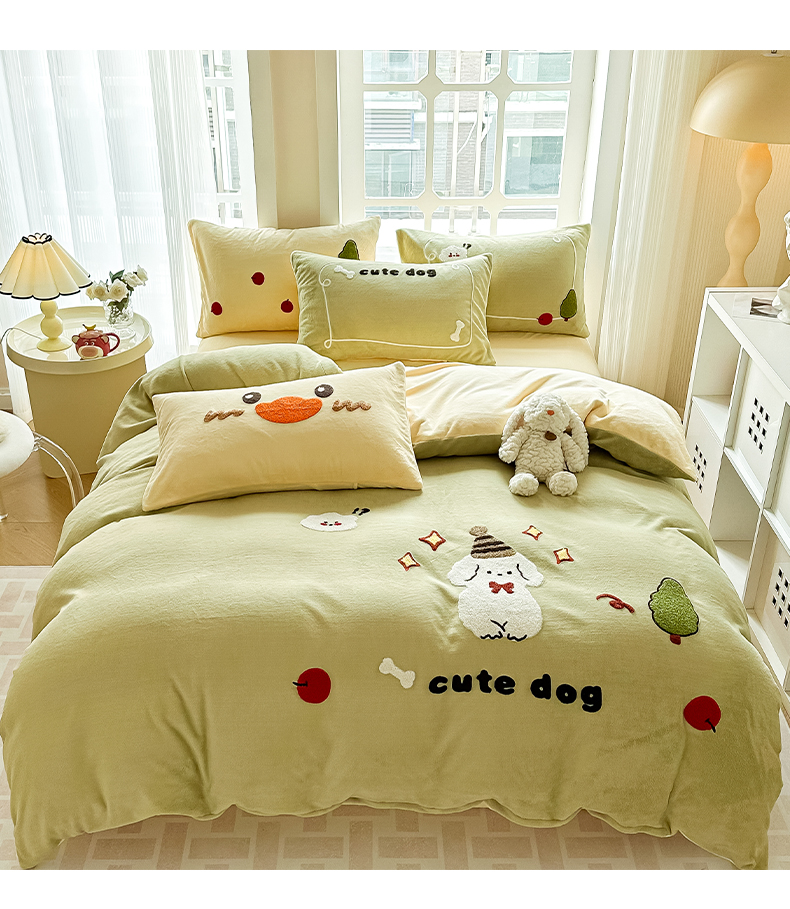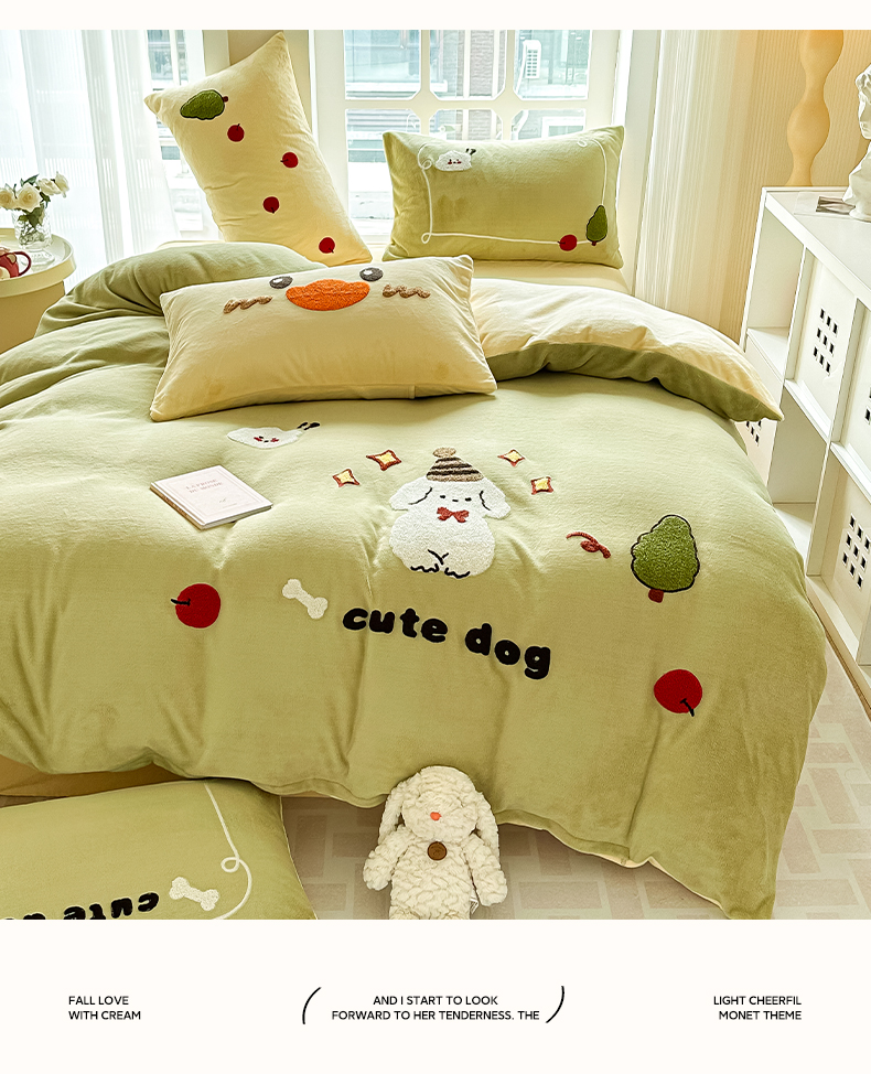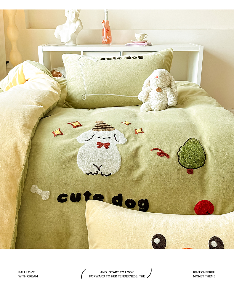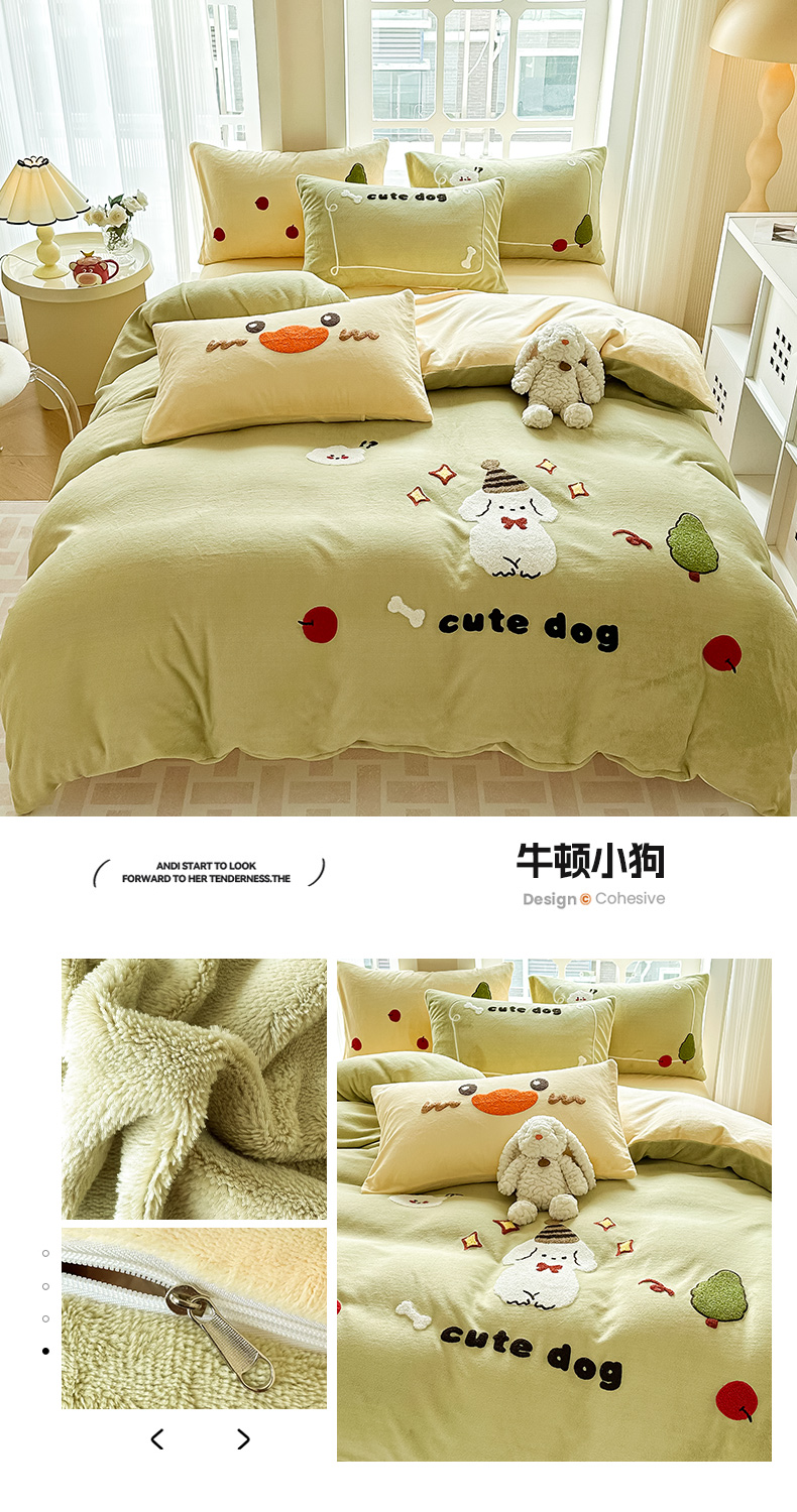 当前位置: 91家纺网 > 商品网购 > 床品套件 > 四件套 > 牛奶绒四件套 > 眠屿家纺 2023新款牛奶绒毛巾绣四件套(温馨版) 牛顿小狗