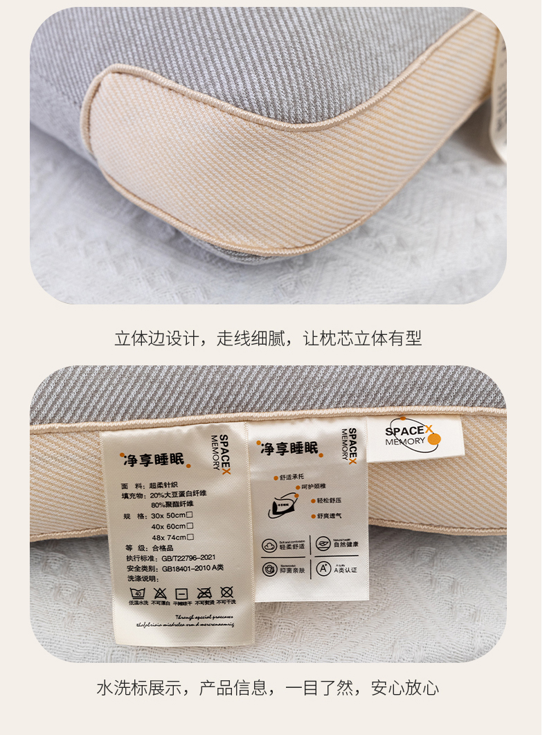 (总)凡星枕业 2023新款超柔针织大豆护颈枕定型枕枕头枕芯,灰色低枕,灰色中枕,灰色高枕,卡其低枕,卡其中枕,卡其高枕