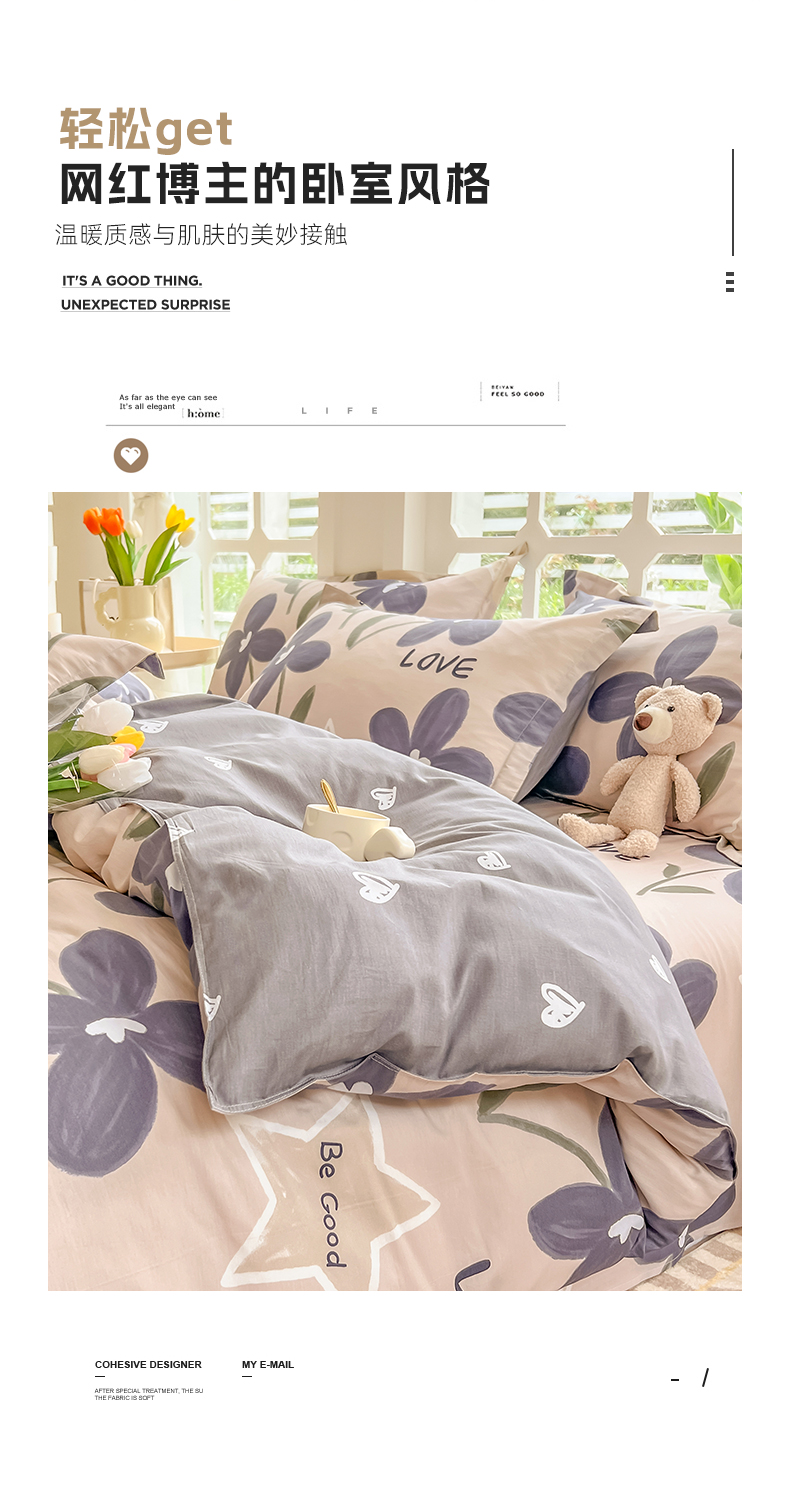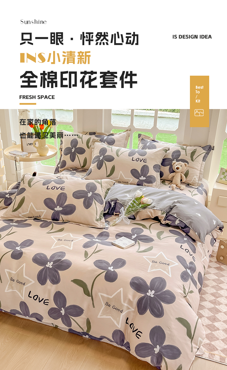 当前位置: 91家纺网 > 商品网购 > 床品套件 > 四件套 > 全棉普通四件套 > 绵庭家纺 2023新款12868系列全棉小清新印花四件套 雅卉