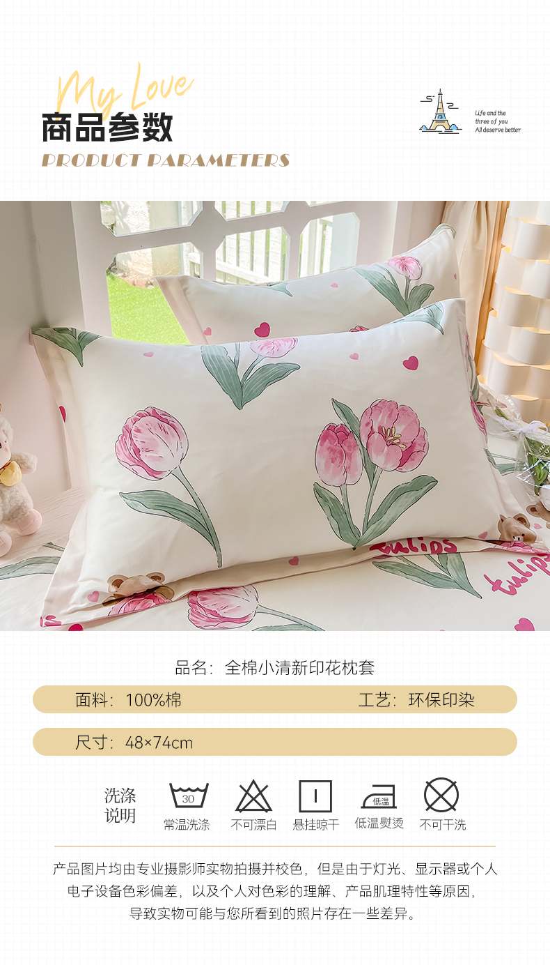 绵庭家纺 2023新款12868系列全棉小清新印花单枕套 茉莉幻想