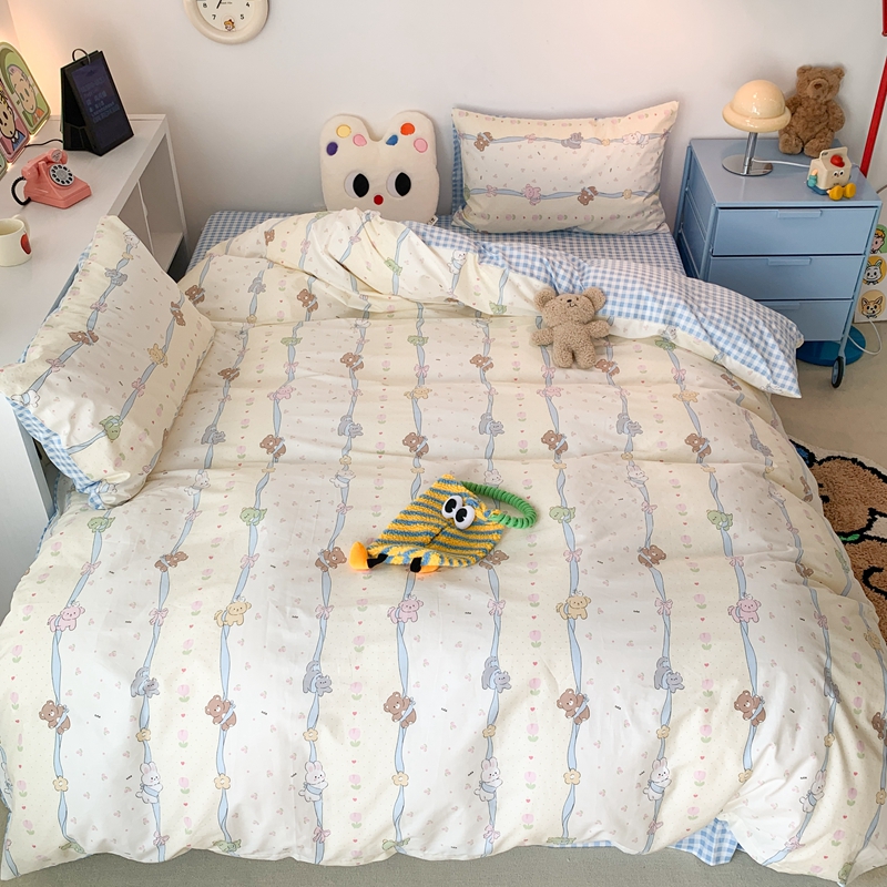 (总)昔可 2023新款学生季卡通普通款四件套,彩色气球熊,彩条恐龙,憨憨熊,花蜜小兔,蘑菇兔,圈圈草莓,蔬菜小兔,郁金香小萌狗