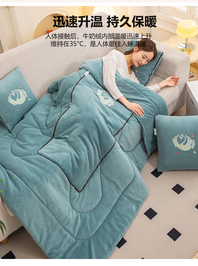 (总)翰轩家居 2023新款牛奶绒轻奢大牌风刺绣抱枕被,洛兮-丹宁蓝,洛兮-奶油蓝,洛兮-柔粉,洛兮-蔚蓝,洛兮-薰衣草紫,洛兮-优雅灰,洛兮-云山绿