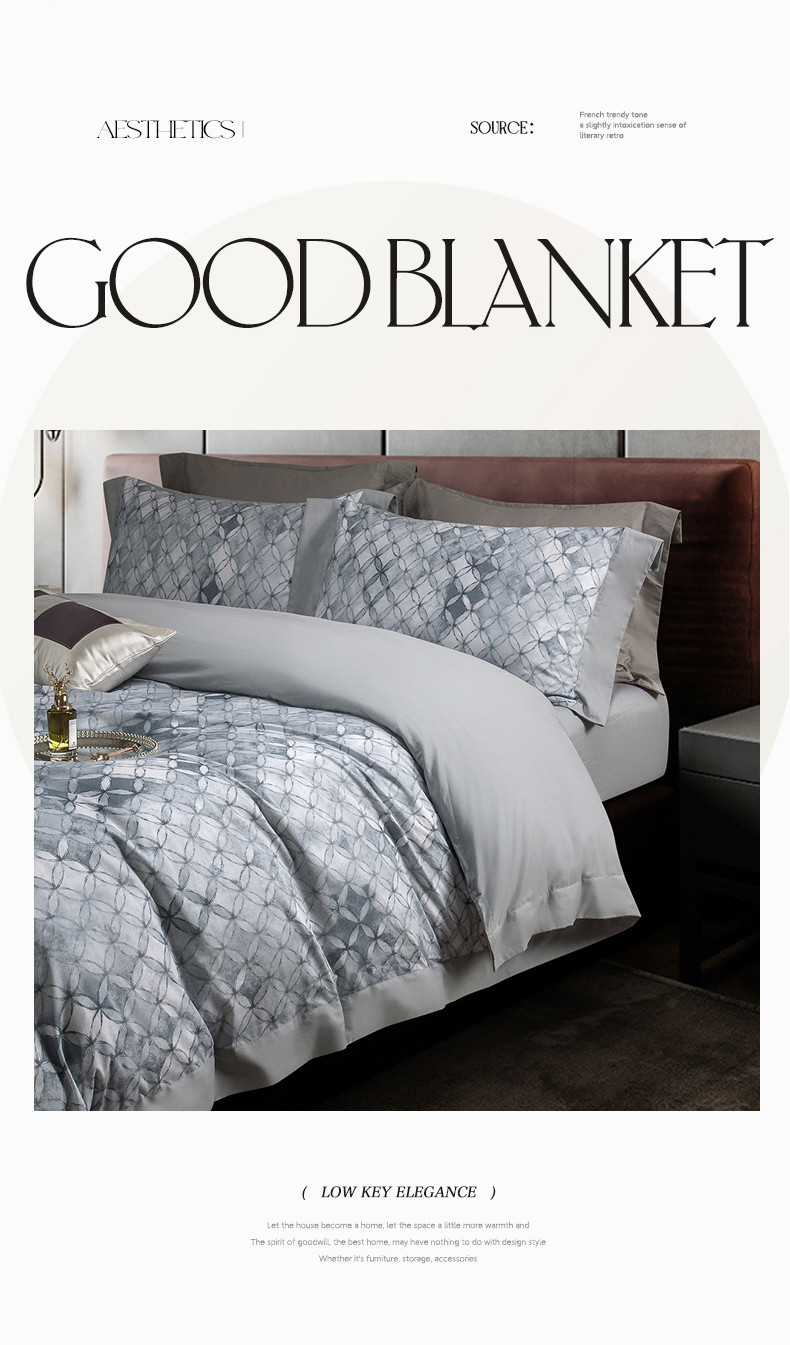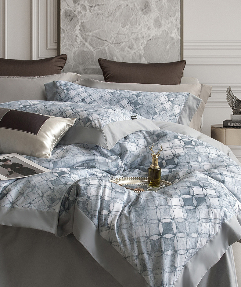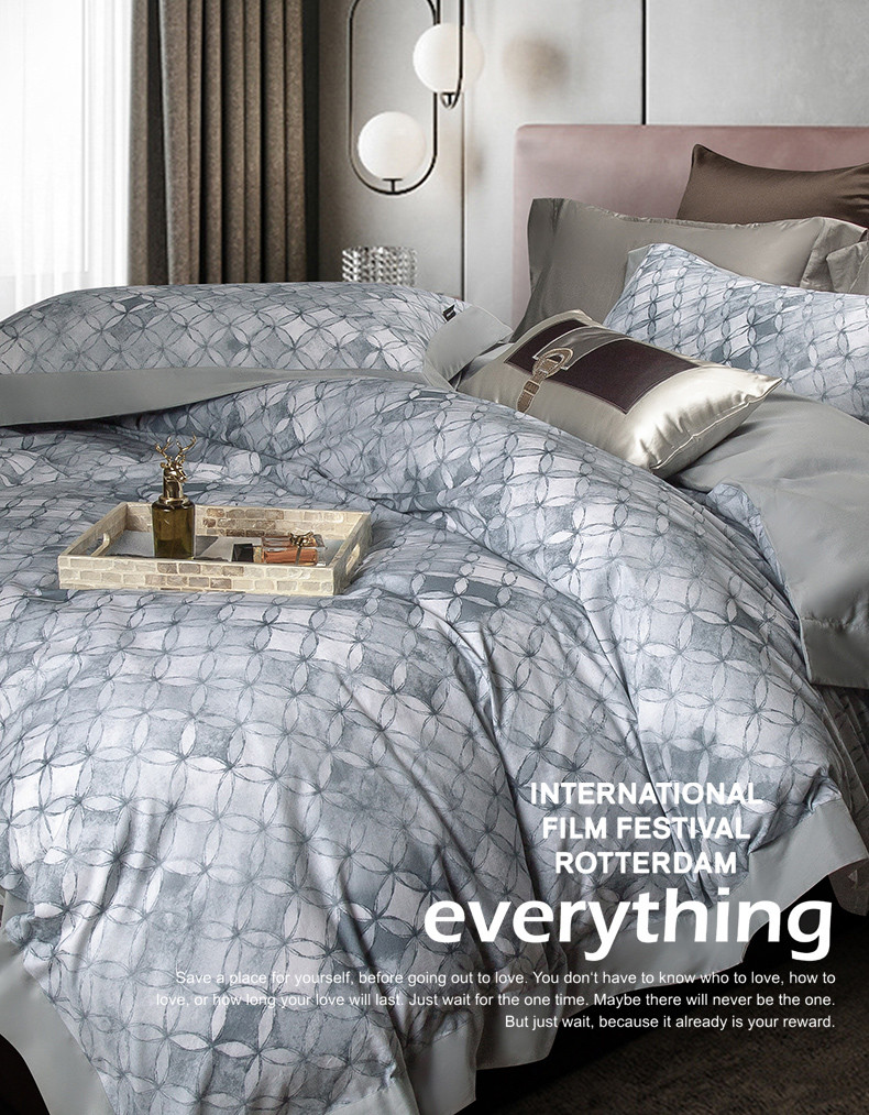 商品名称:121 新款宽边枕套磨毛数码印花四件套-琉璃雾都 琉璃雾都-深灰