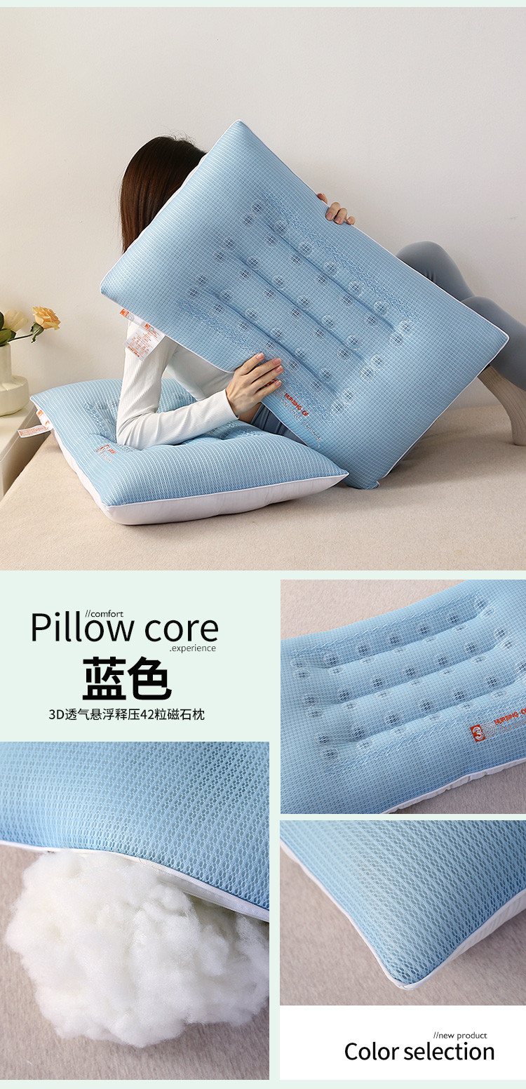 梦叶草 2023款新款3D透气悬浮释压42粒磁石枕芯空气层枕头蓝色