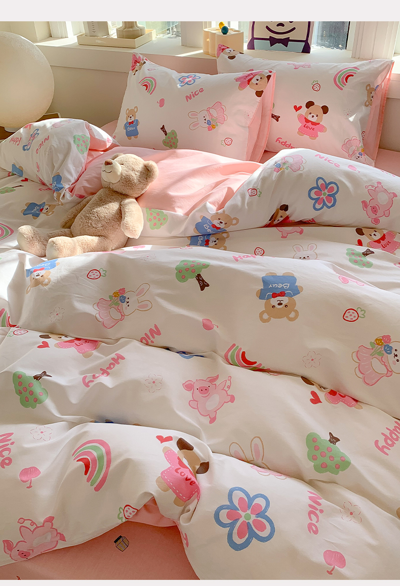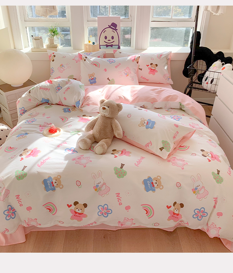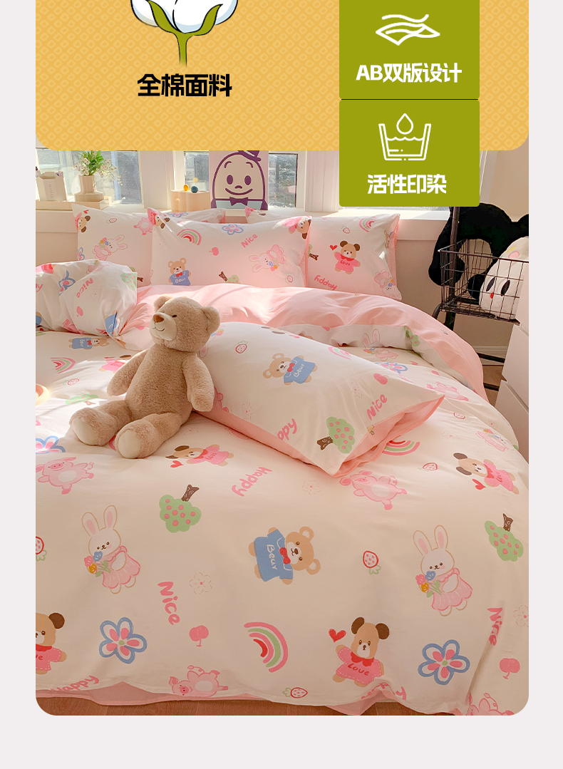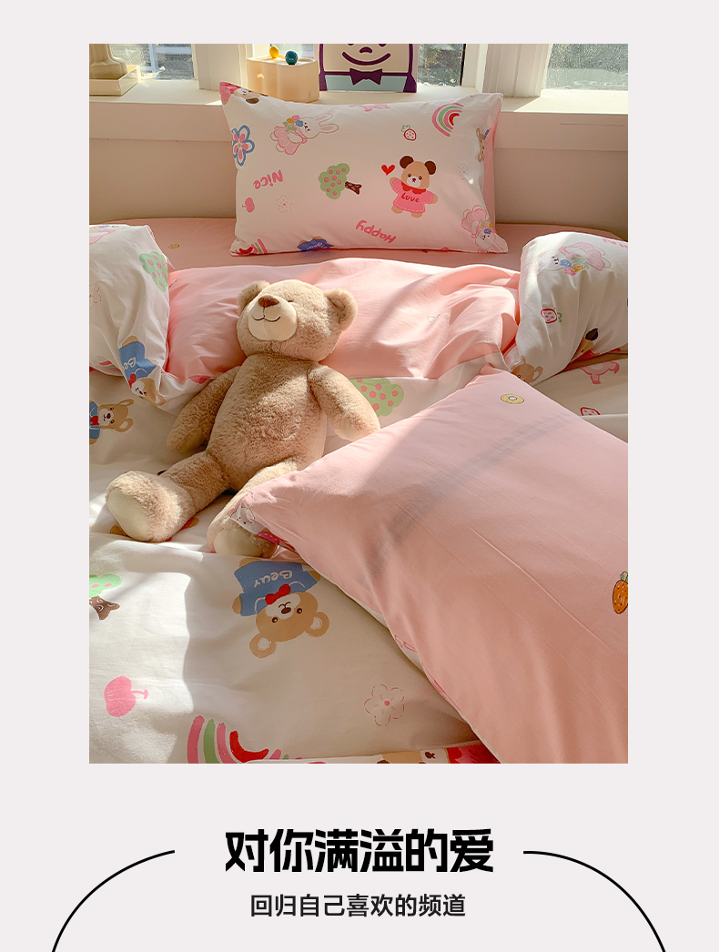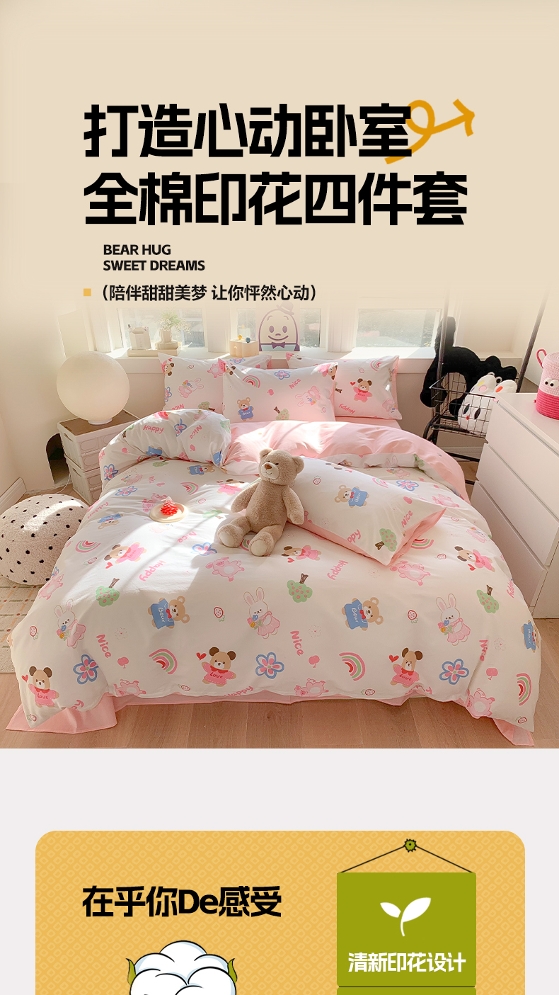 商品名称:澳萝拉 2024新款全棉印花亲肤舒适四件套 恋爱小熊