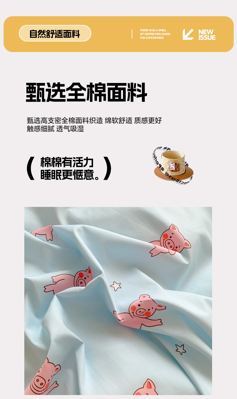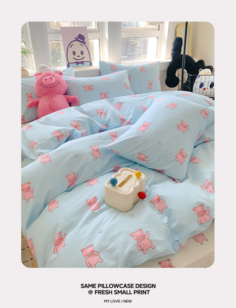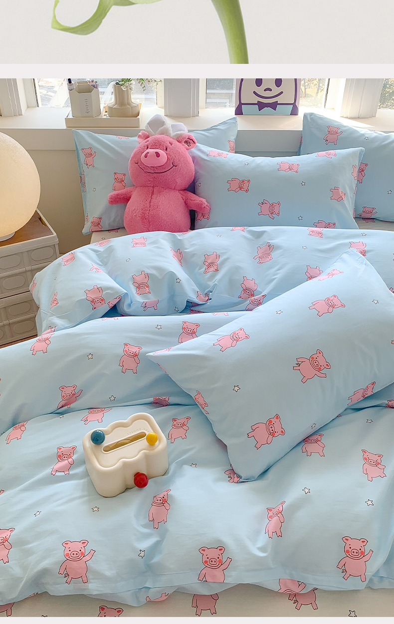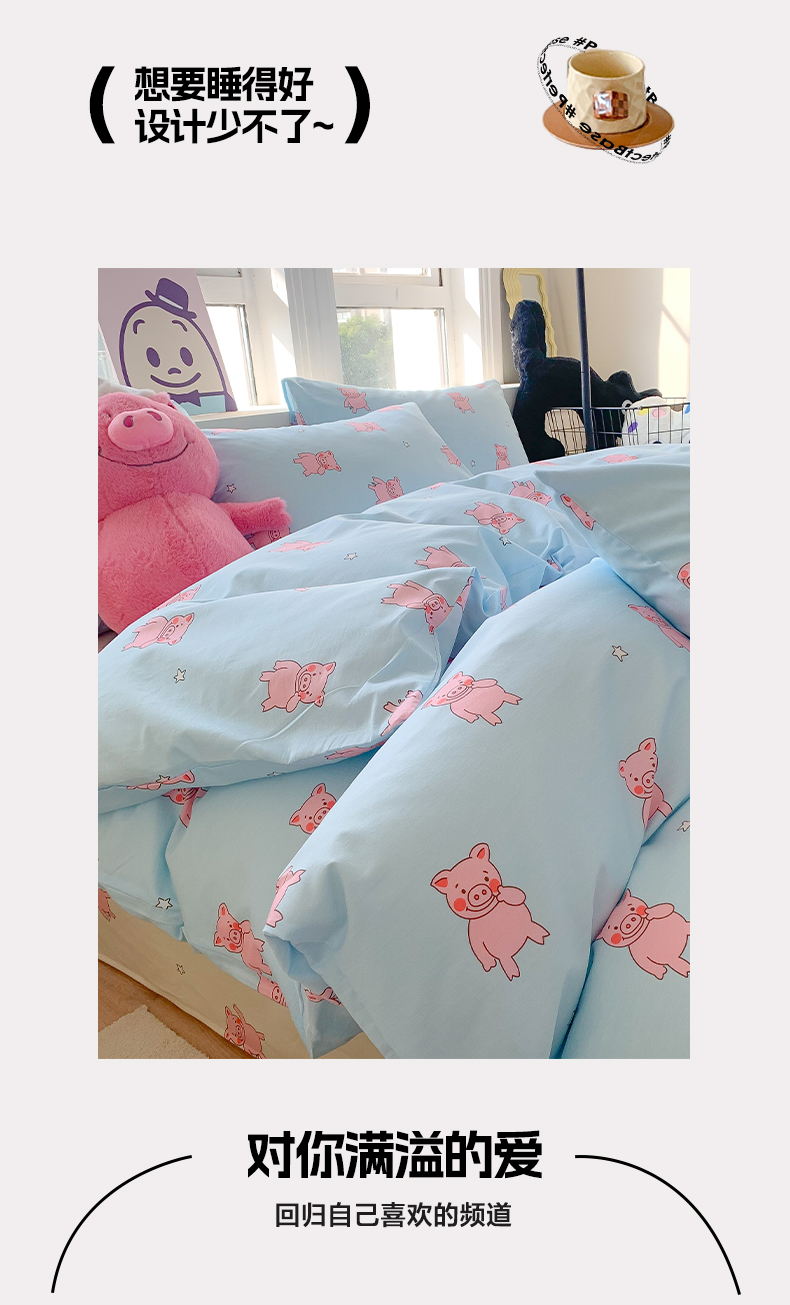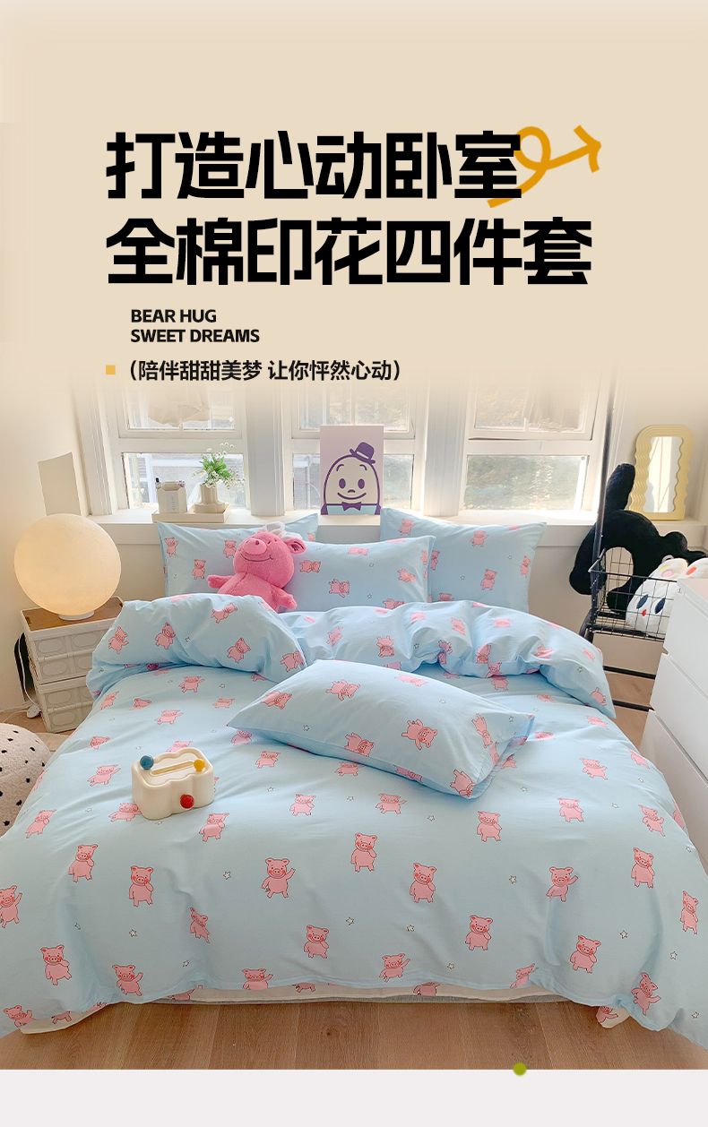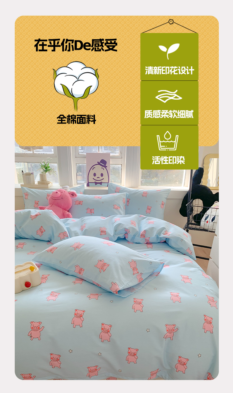 商品名称:澳萝拉 2024新款全棉印花亲肤舒适四件套 萌小猪