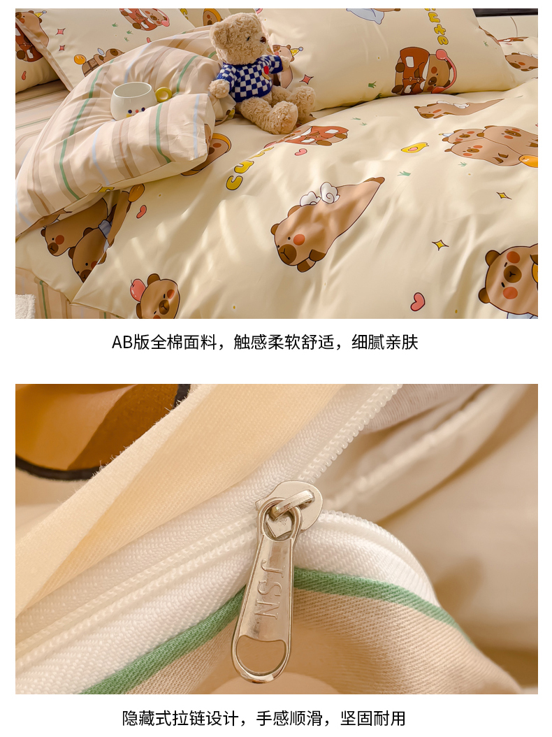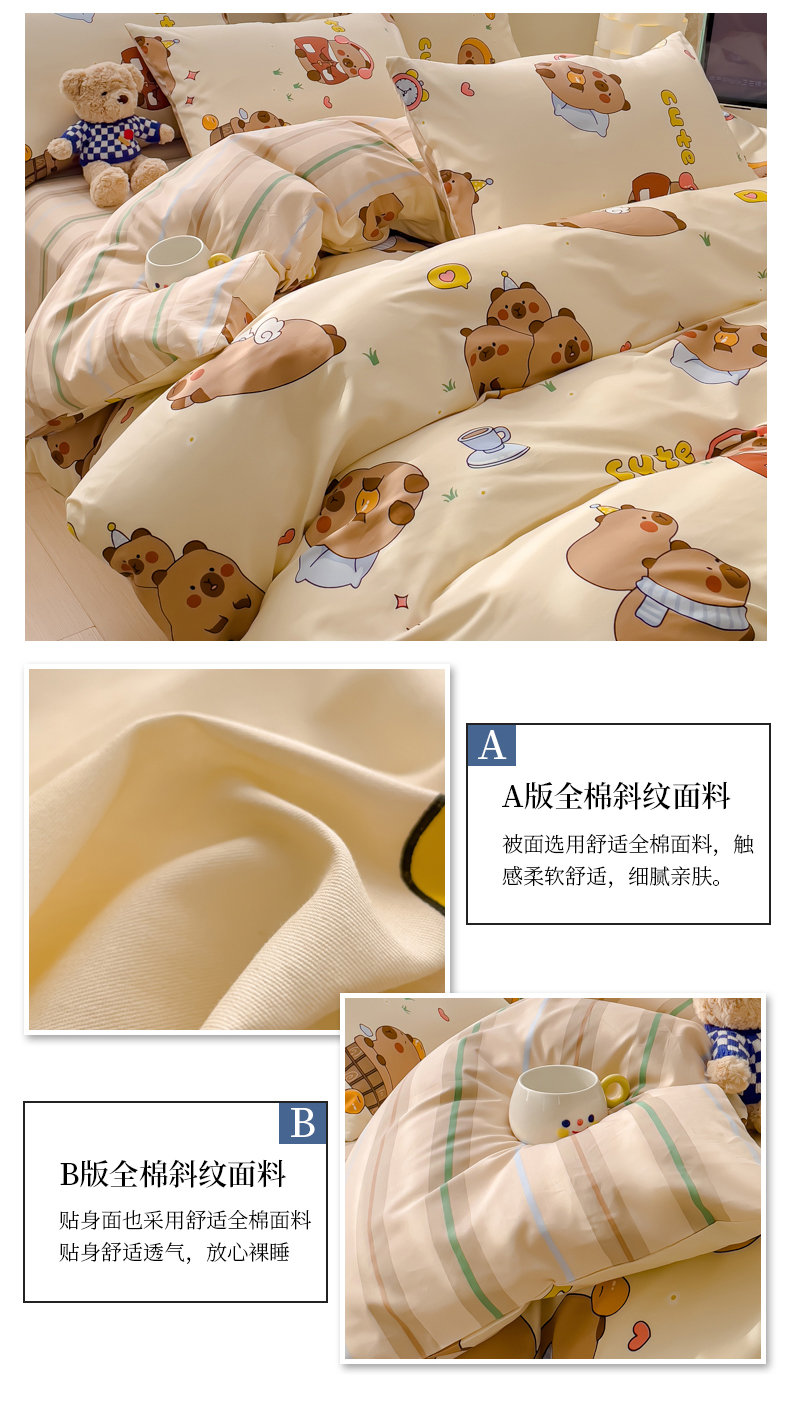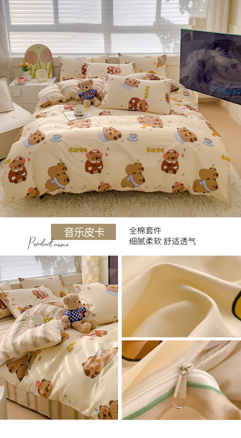 当前位置: 91家纺网 > 商品网购 > 床品套件 > 四件套 > 全棉普通四件套 > 金丝鸟 2024新款全棉四件套可爱卡通系列四件套 音乐皮卡