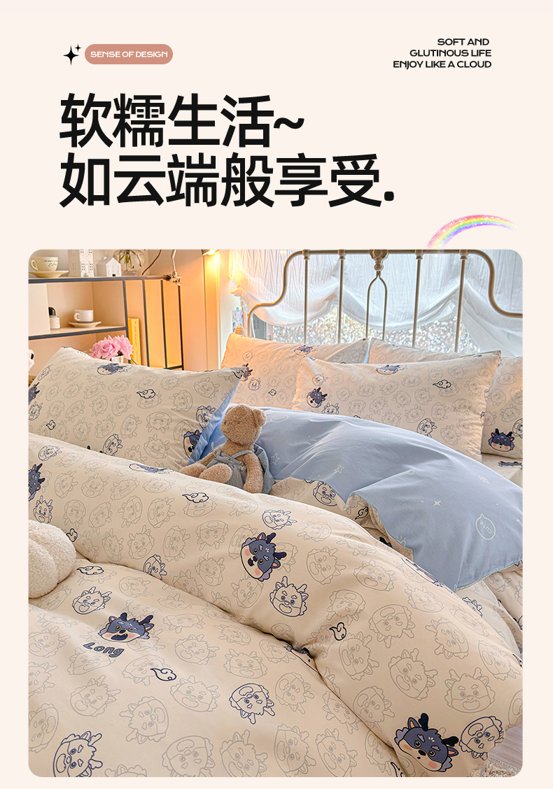 当前位置: 91家纺网 > 商品网购 > 床品套件 > 四件套 > 全棉普通四件套 > 名兮家居 2024新款卡通风系列全棉四件套 龙宝宝-蓝
