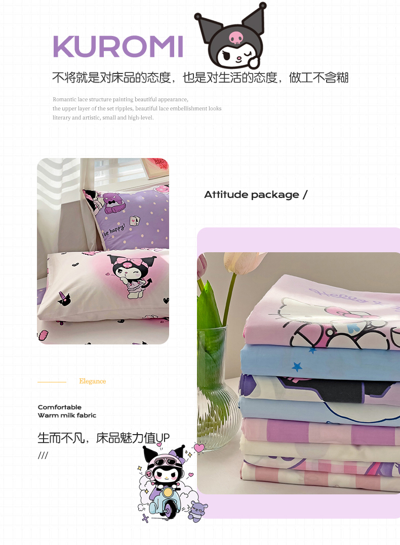 • 91家纺网 家纺一手货源 找家纺 名兮家居 2024新款三丽鸥系列全棉单床单 美美库洛米