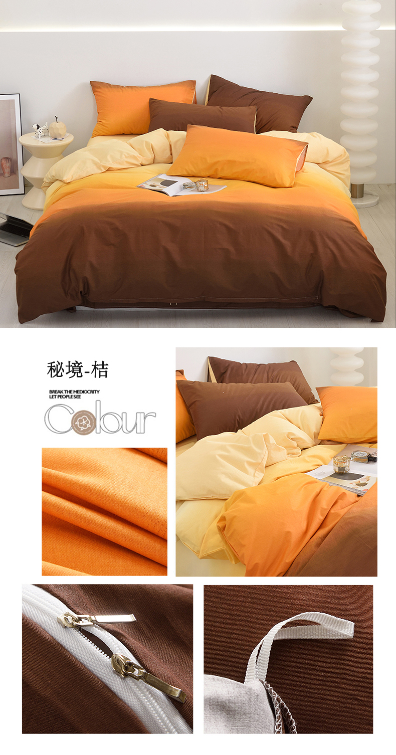 (总)启优家纺新款全棉渐变色四件套纯色床笠款四件套,秘境-粉,秘境-黑,秘境-灰,秘境-桔,秘境-绿,星河-绿