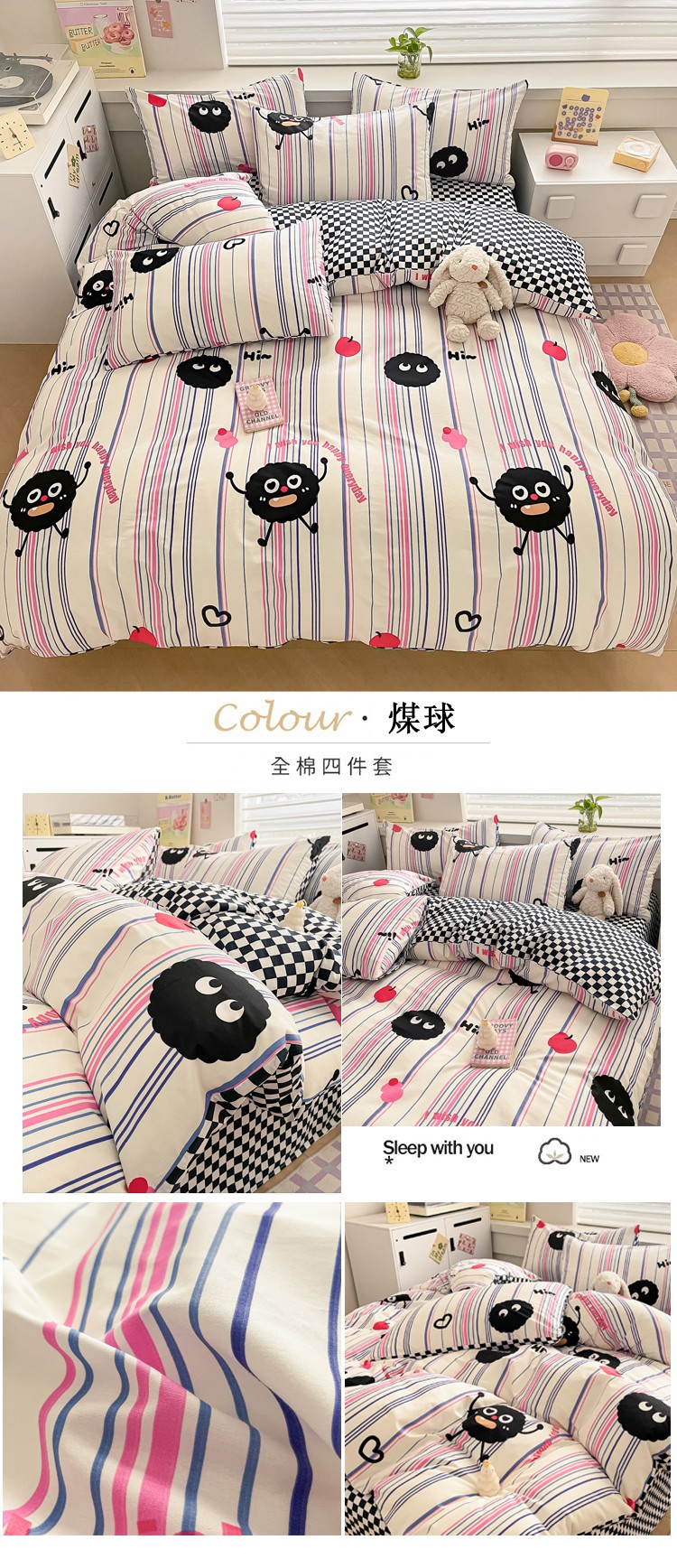 当前位置: 91家纺网 > 商品网购 > 床品套件 > 四件套 > 全棉普通四件套 > 柠馨 2024新款全棉13376乖萌系列四件套(第六批) 煤球