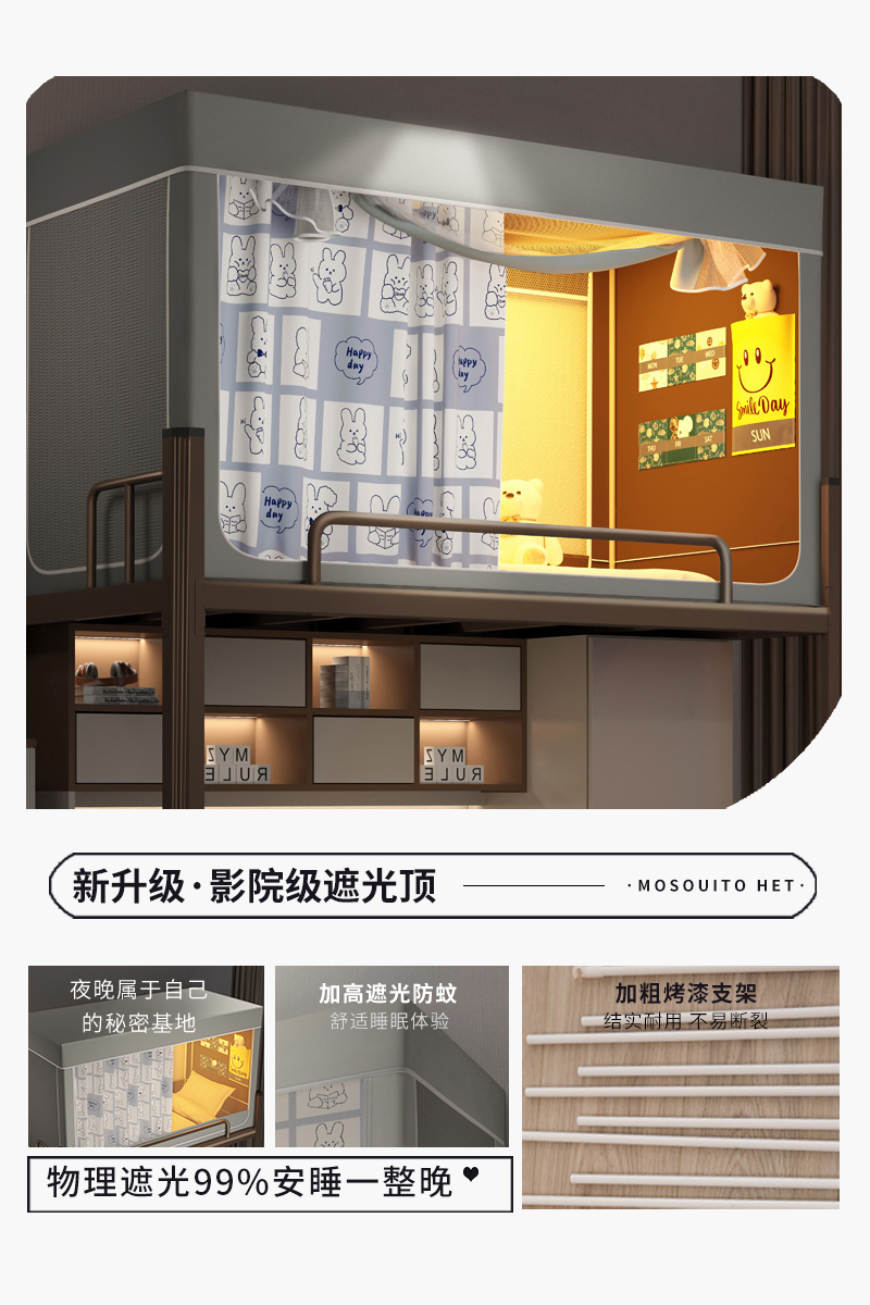 当前位置: 91家纺网 > 商品网购 > 床上用品 > 蚊帐 > 学生蚊帐 > 宅部落 2024新款99%全遮光涂层学生上下铺蚊帐 印花-格格兔