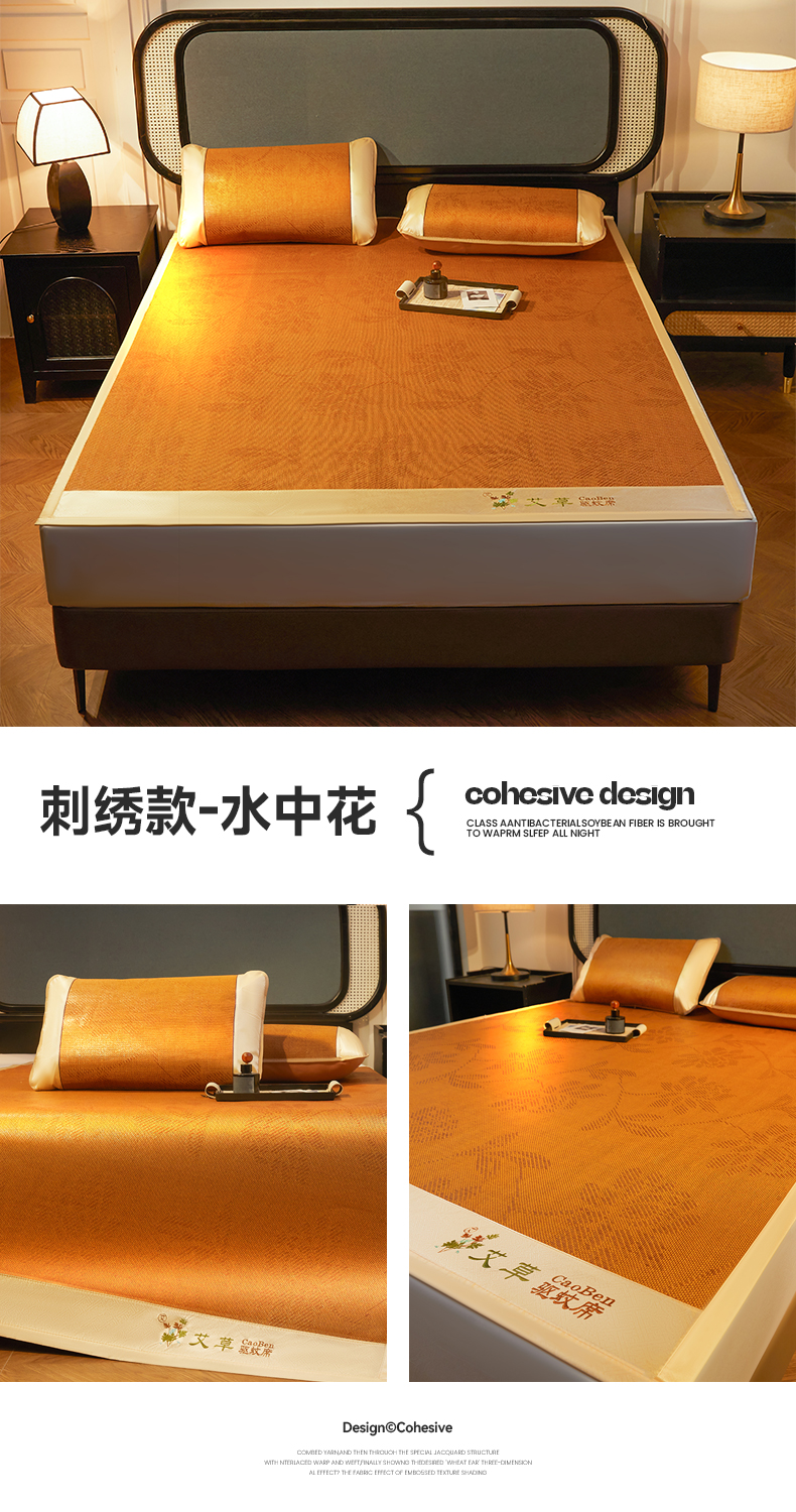 商品名称:大元 2026新款凉席刺绣艾草藤席 刺绣款-水中花