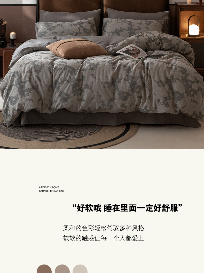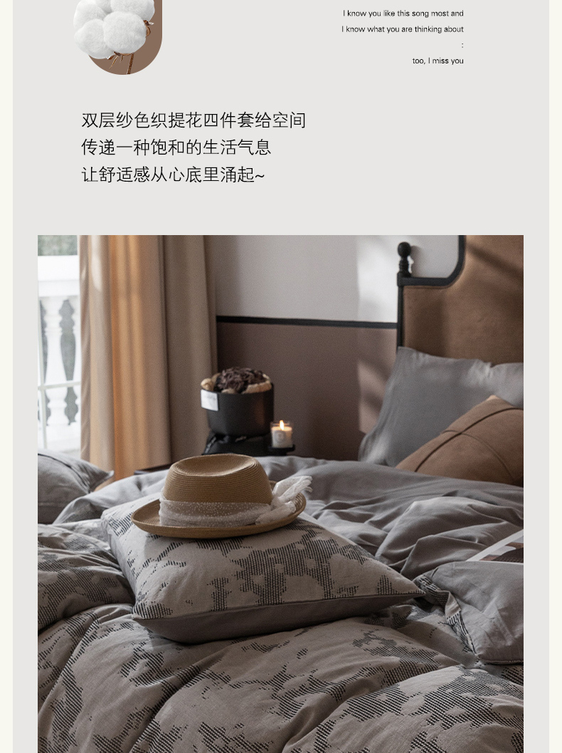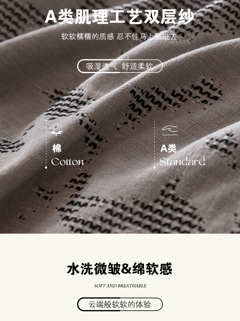 (总)棉邦 2024新款全棉色织工艺双层纱四件套,大展宏图卡其,大展宏图冷灰,大展宏图米白,格高意远灰粽,格高意远卡其,格高意远米白