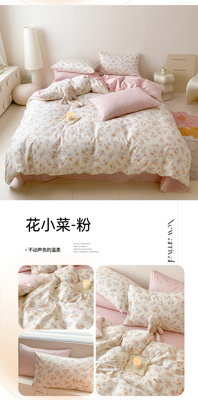 嘉汀兰家居 2024新款40s全棉印花四件套系列 花小莱-粉