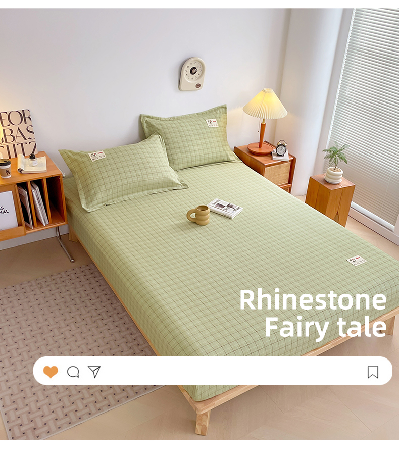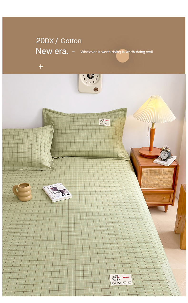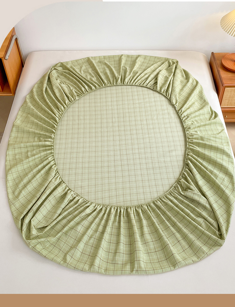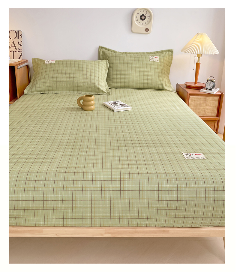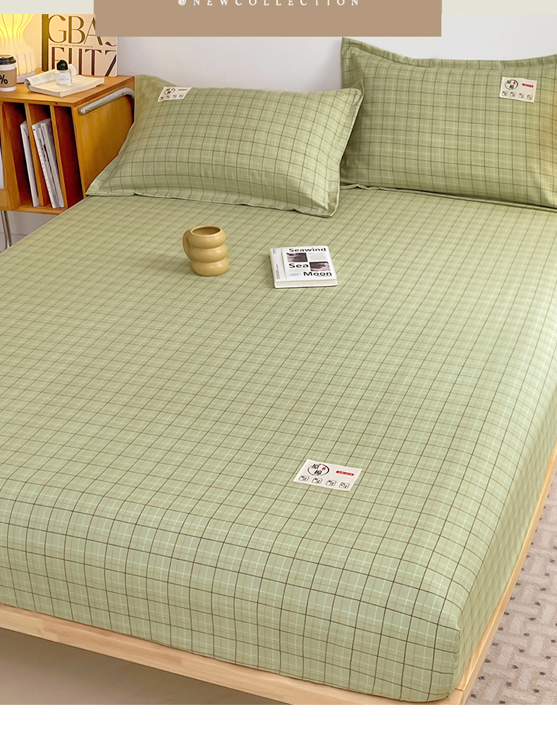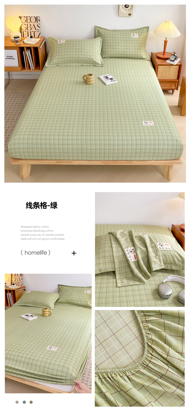 梦舒羽 2025新款水洗棉麻单层床笠席梦思床垫保护套床单套加枕套-简约格子 线条格-绿
