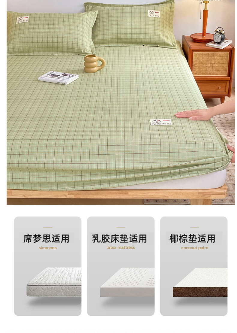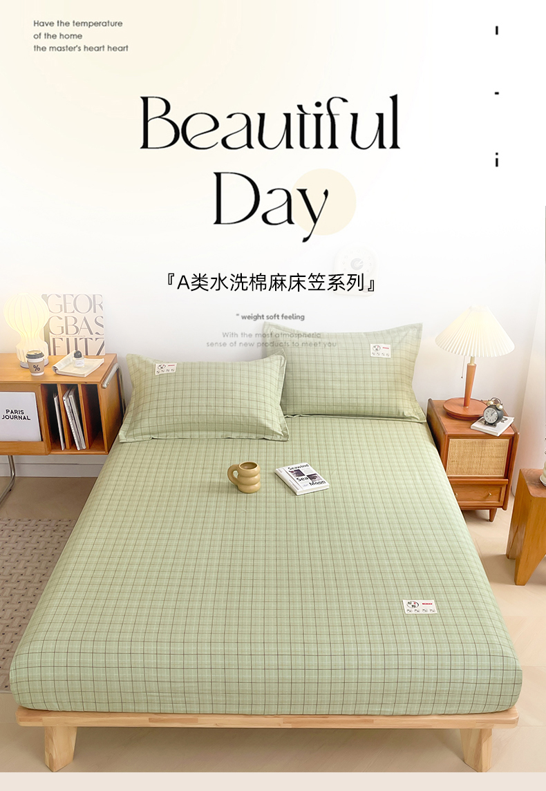 当前位置: 91家纺网 > 商品网购 > 床上用品 > 床笠 > 梦舒羽 2025新款水洗棉麻单层床笠席梦思床垫保护套床单套加枕套-简约格子 线条格-绿