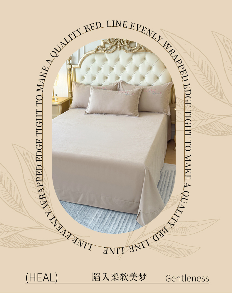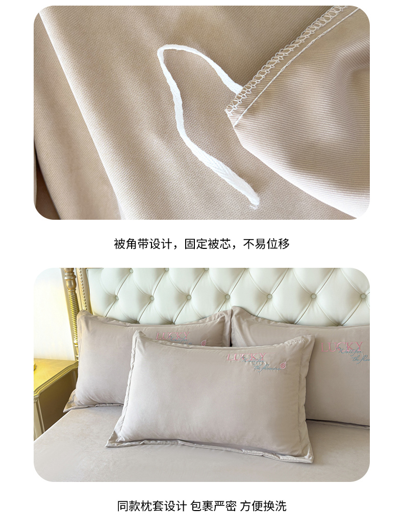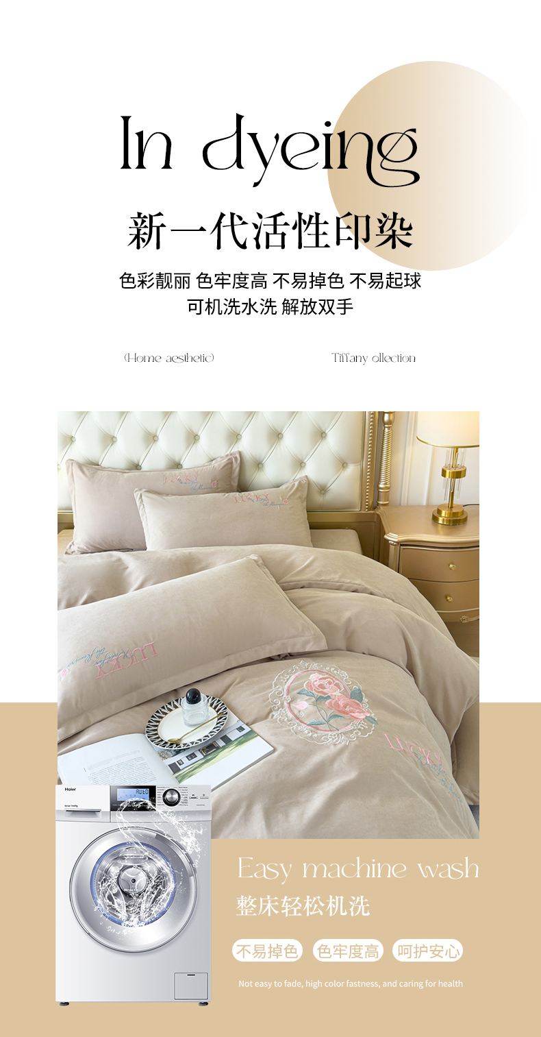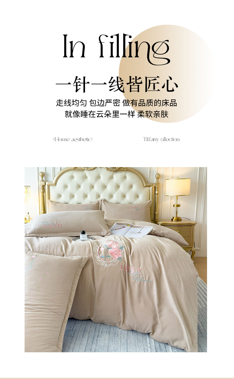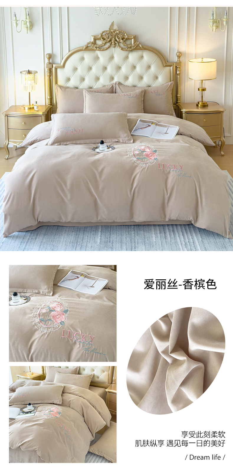 商品名称:鑫利来家纺 2024新款水洗斜纹棉蛋白棉绣花磨毛四件套 爱丽丝-香槟色