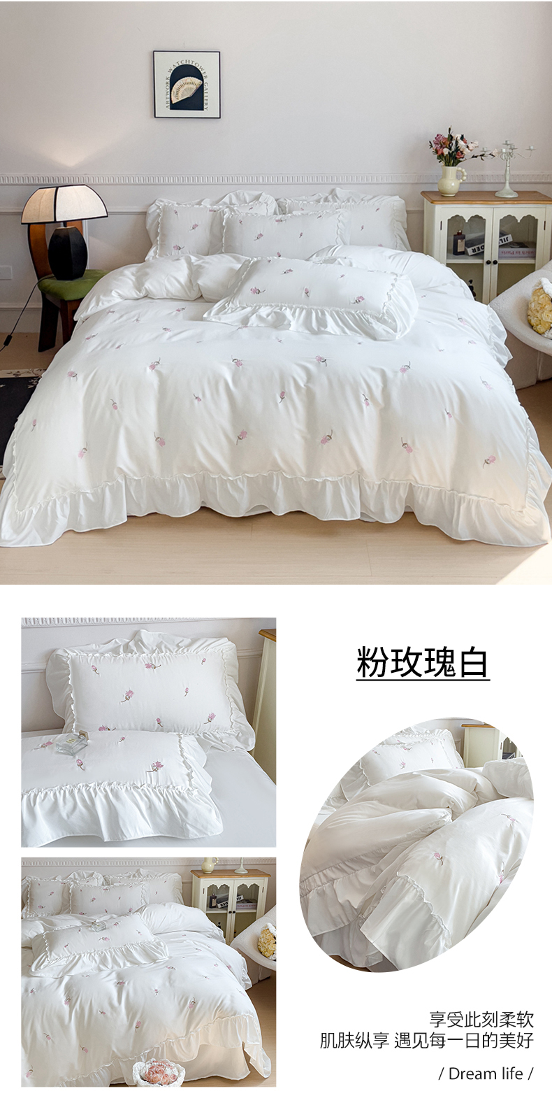 (总)狂想家 2025新款水洗棉磨毛刺绣四件套,粉玫瑰浅绿,粉玫瑰白,粉玫瑰粉,粉玫瑰紫,粉玫瑰蓝,黑玫瑰白