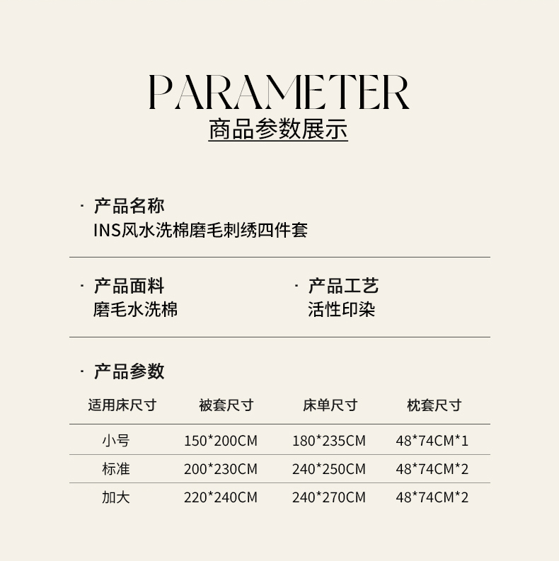 商品名称:(总)狂想家 2025新款水洗棉磨毛刺绣四件套