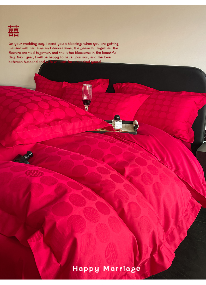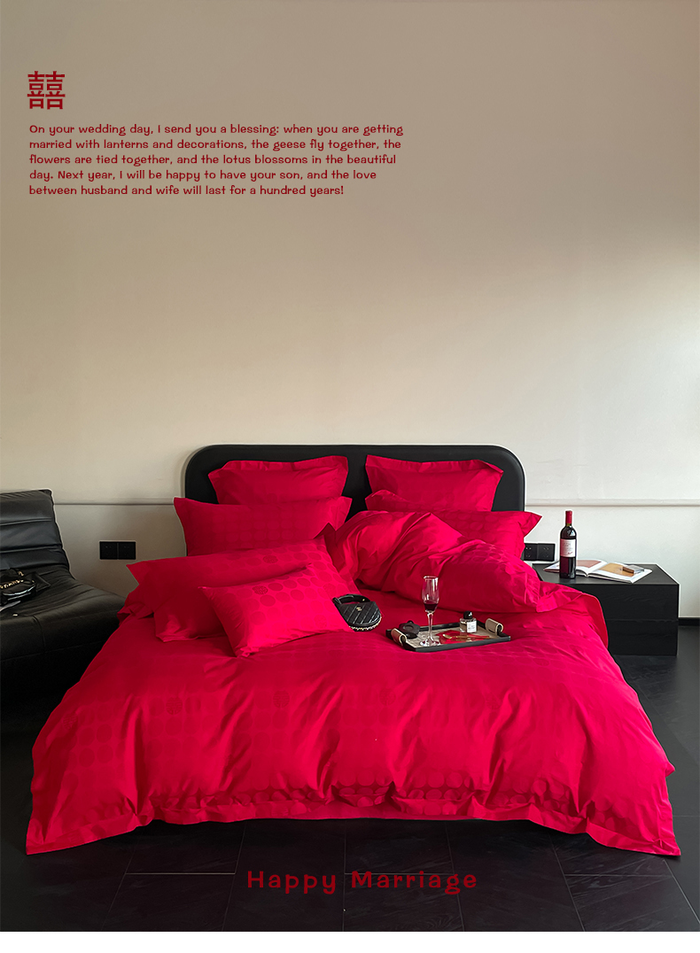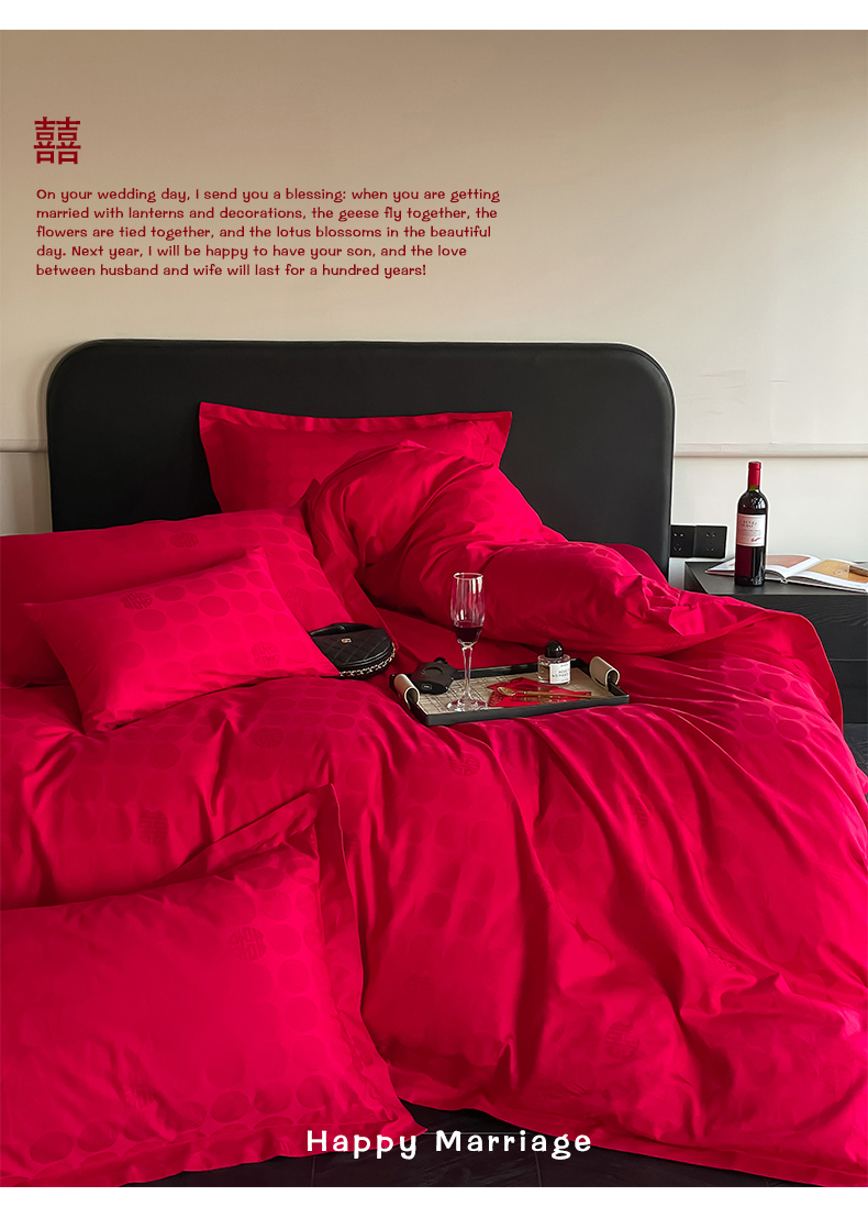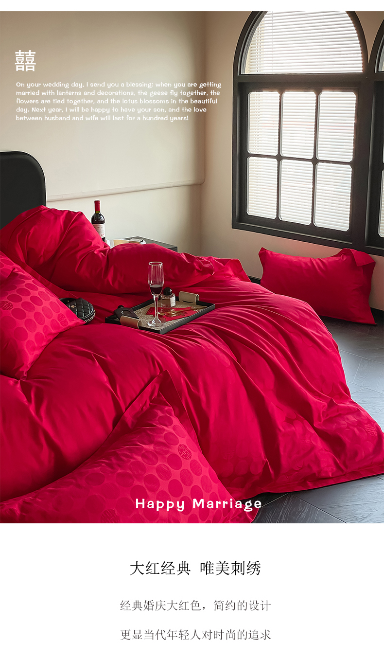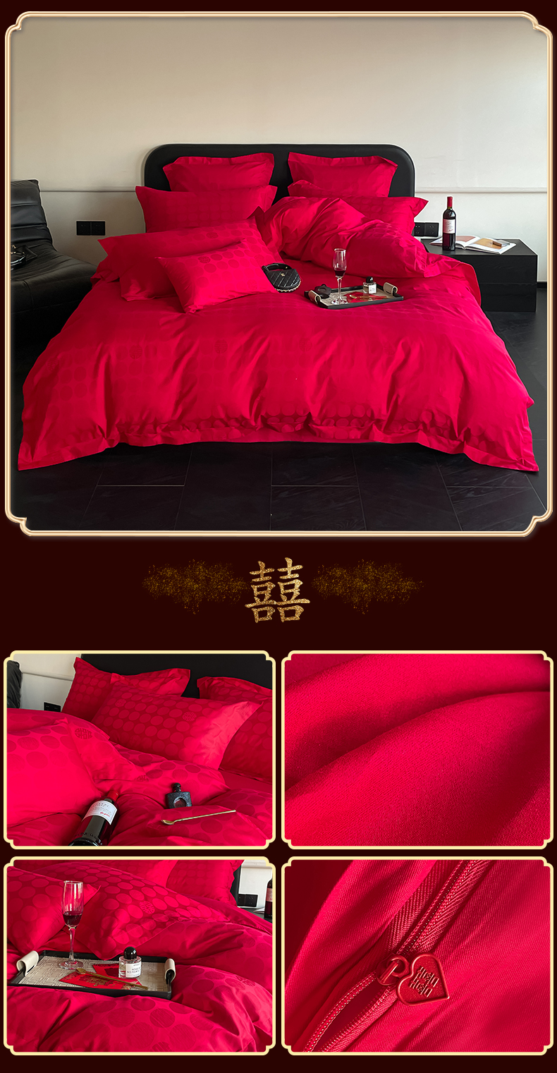 当前位置: 91家纺网 > 商品网购 > 床品套件 > 四件套 > 婚庆四件套 > 东方合美(原:皇家传奇) 2024新款亲肤提花新中式纯棉婚庆四件套 纯棉-囍