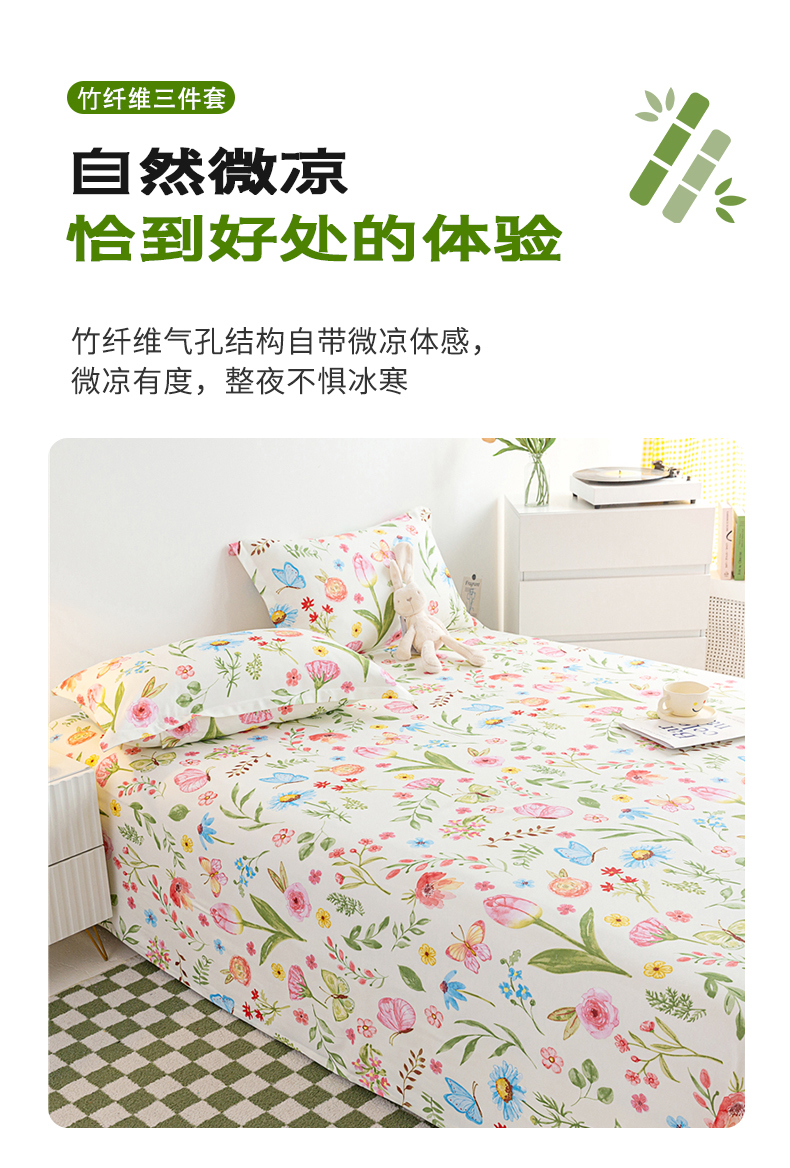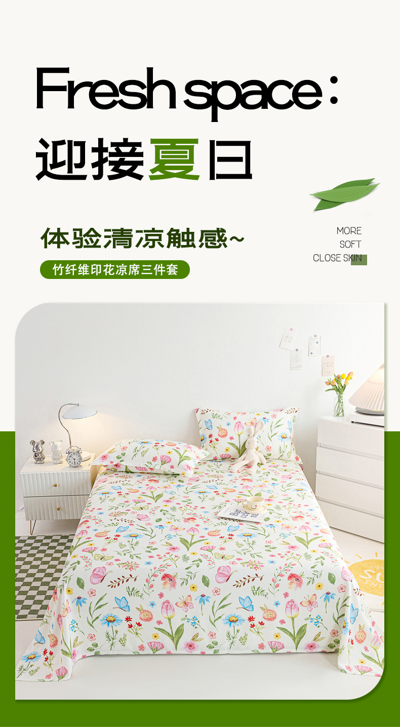 商品名称:金泰莱 2025新款印花竹纤维凉席三件套软凉席竹席盖毯子 微醺