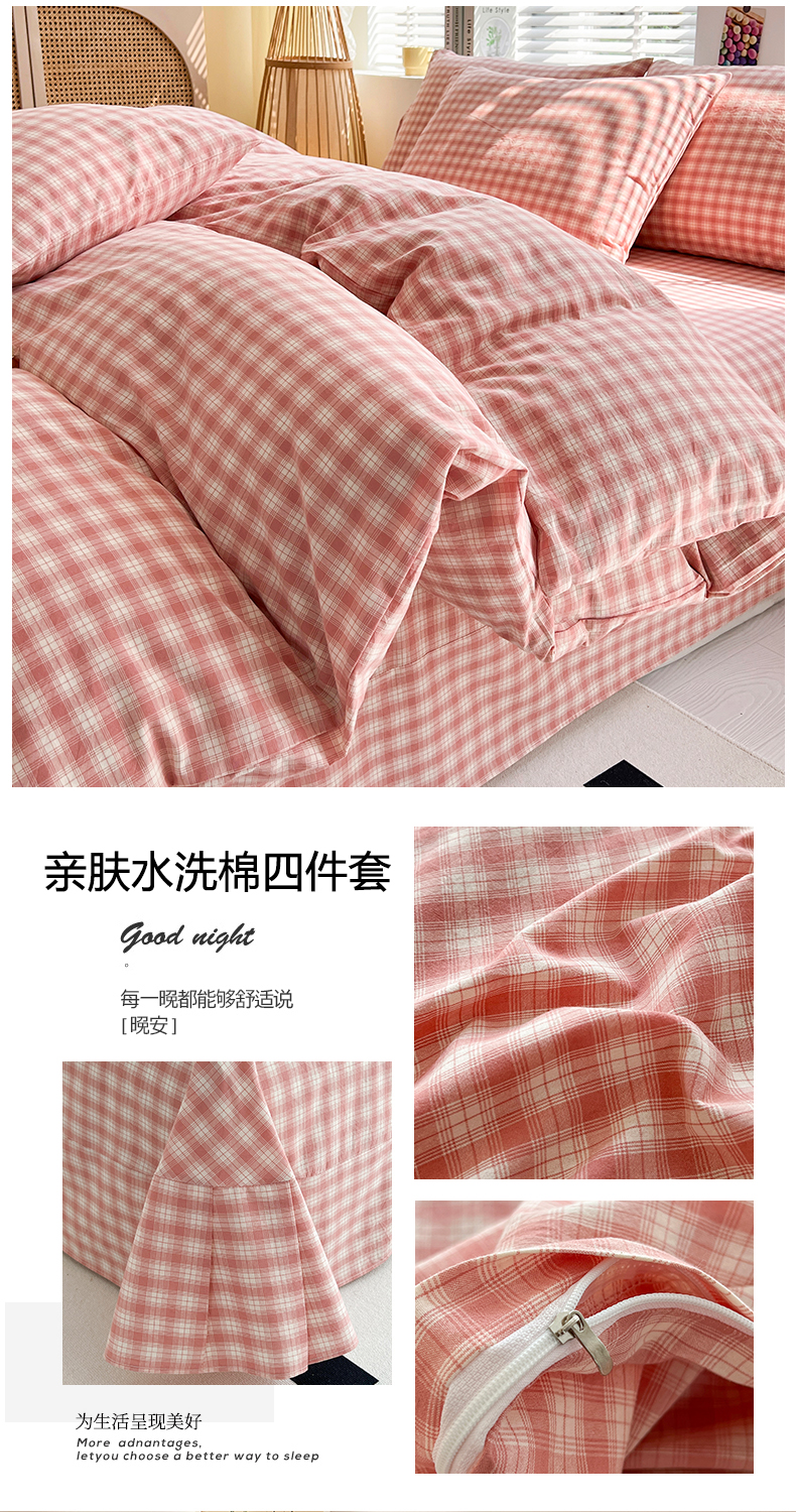 商品名称:梦莱斯 2024新款亲肤水洗棉四件套 尚品粉