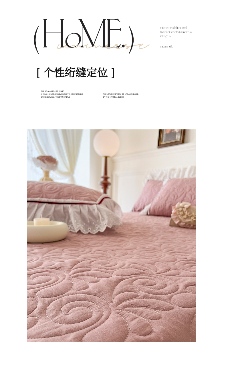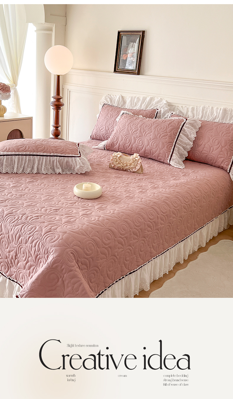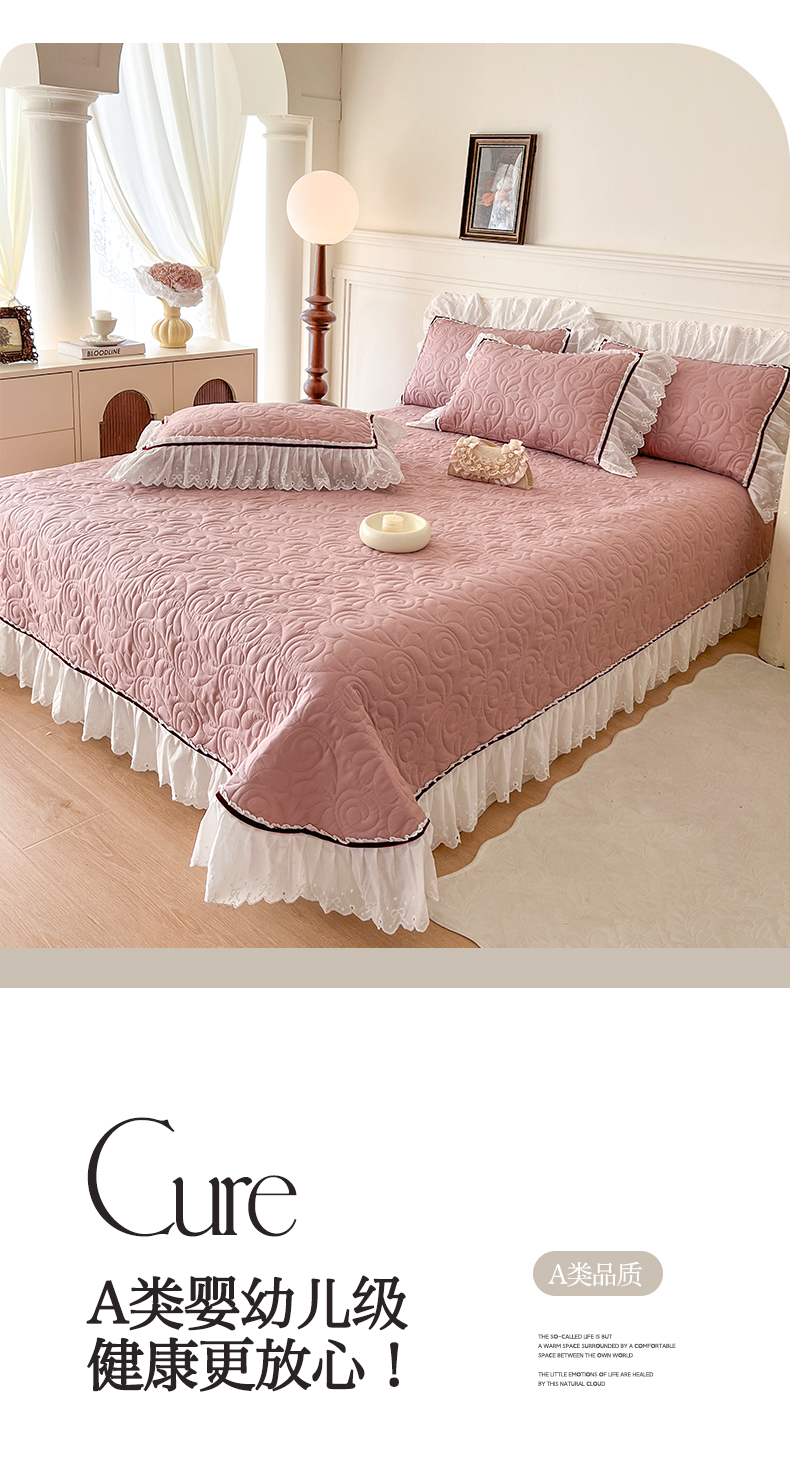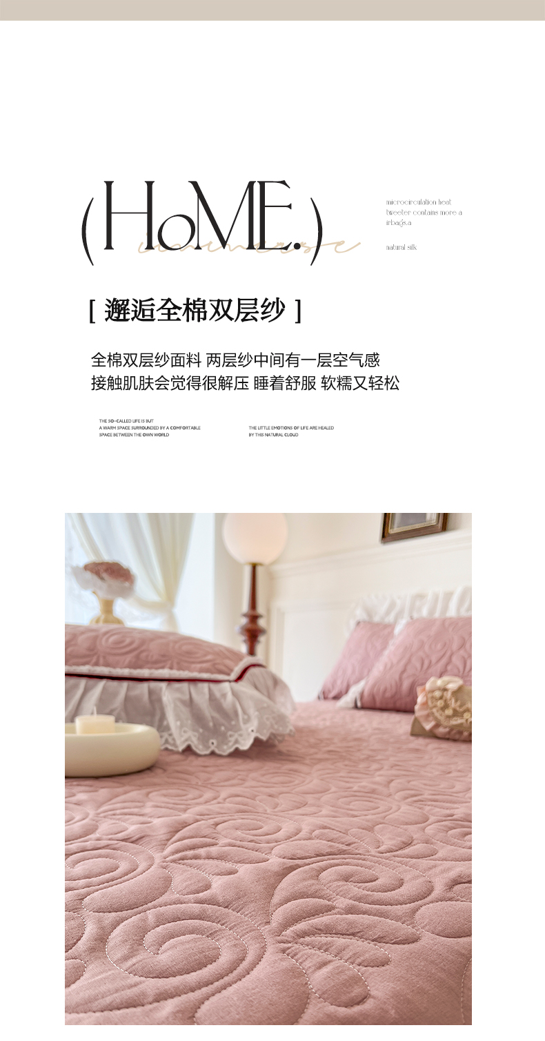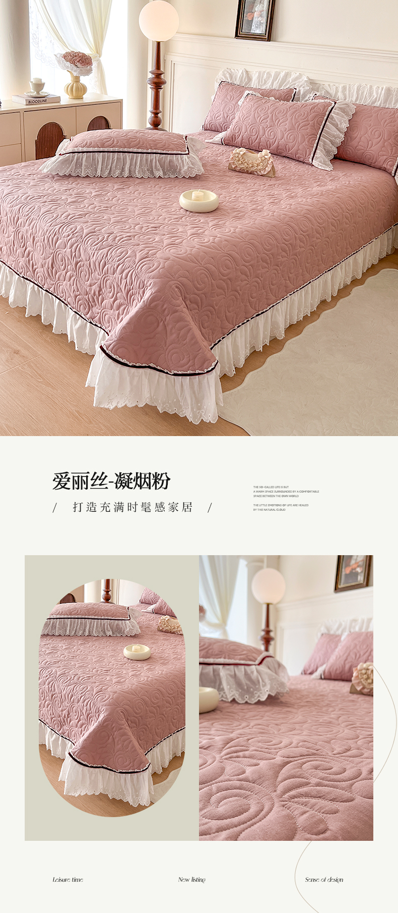 网红馆 2025新款全棉双层纱花边款爱丽丝系列单床盖 凝烟粉
