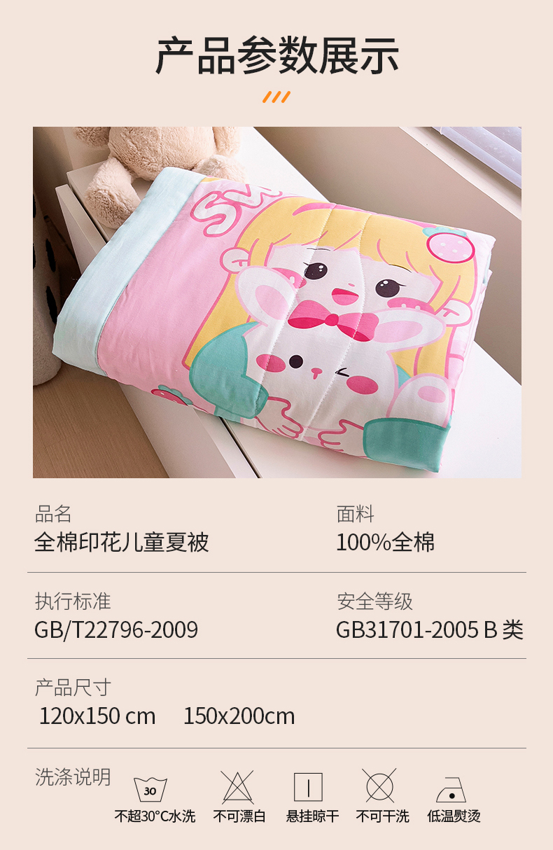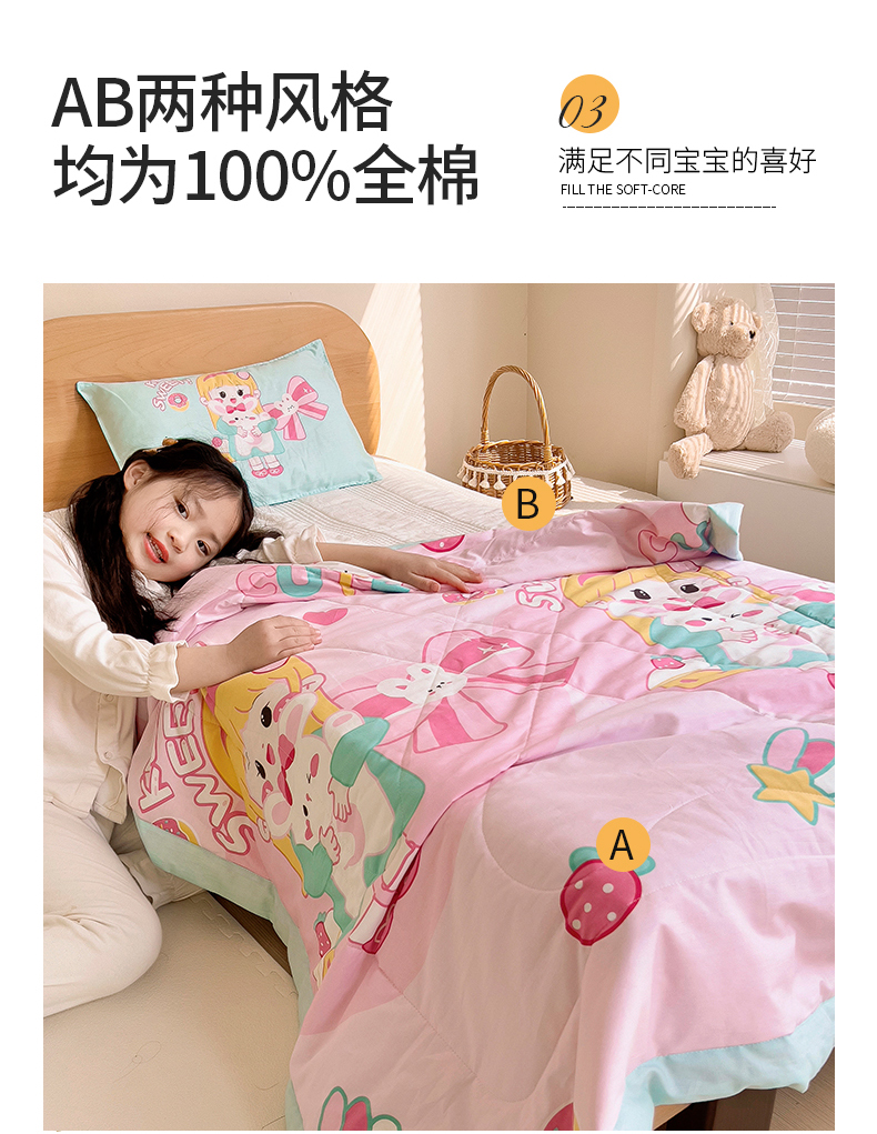 商品名称:吉咪兔 2023新款AB版40S全棉舒适夏凉被 甜心女孩