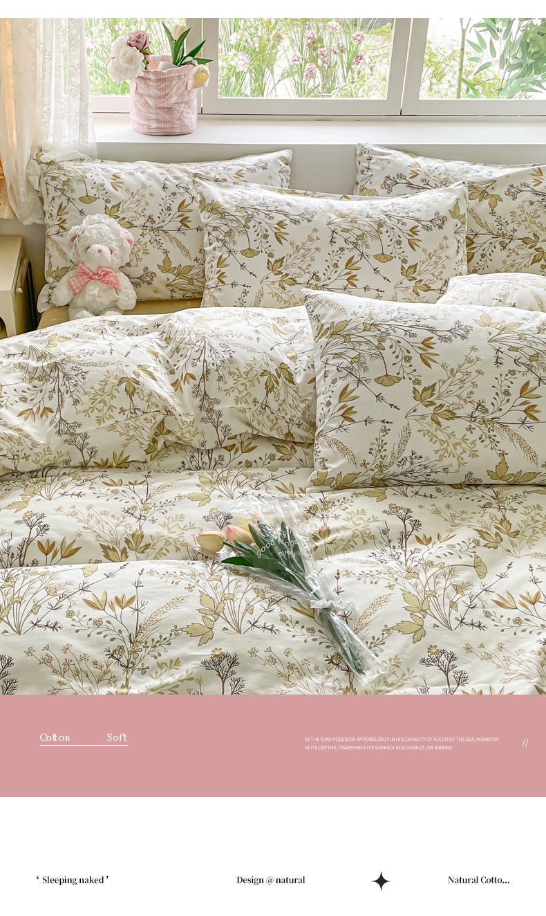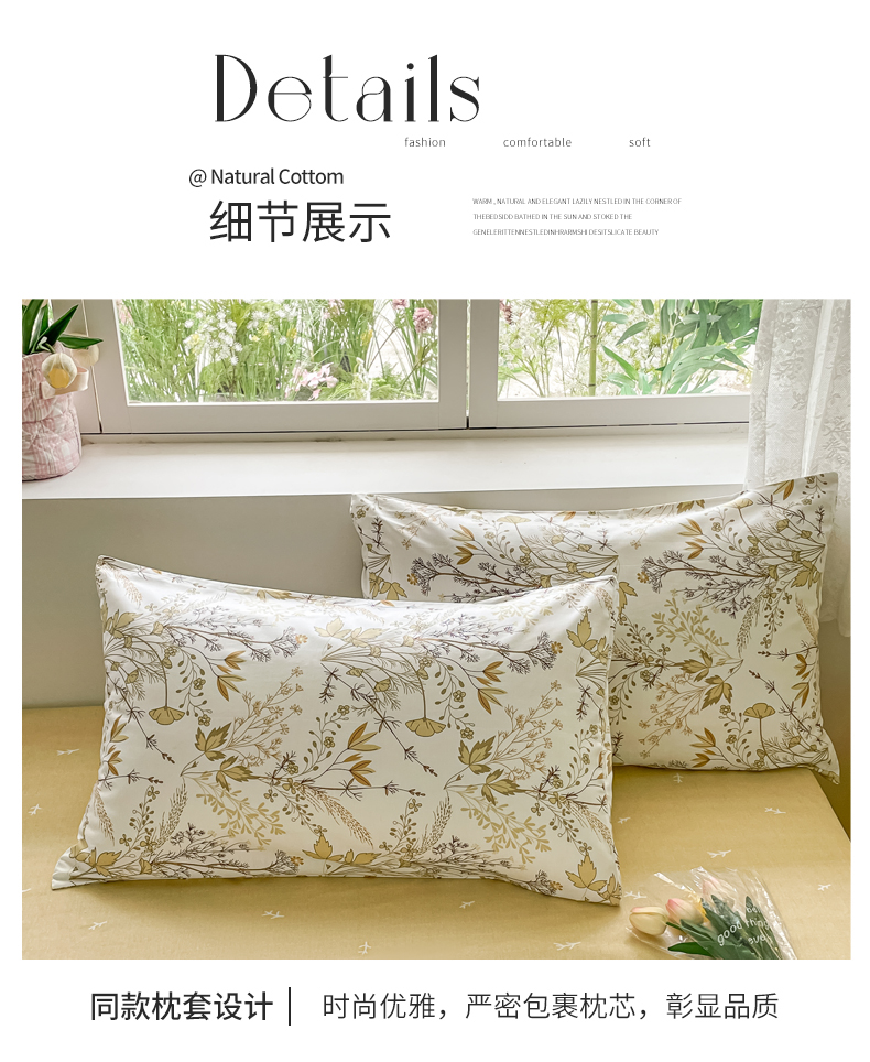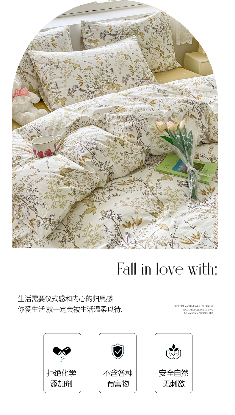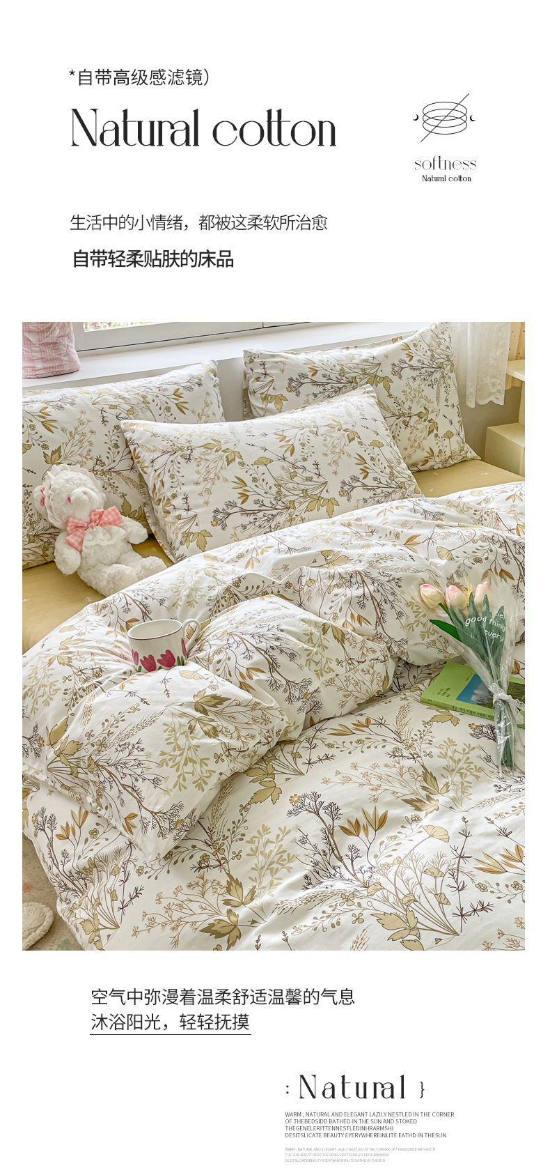 商品名称:洺兰家居 2025年新款13372全棉印花四件套纯棉小清新北欧风花卉床单床笠款套件 宁夏