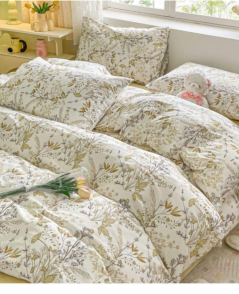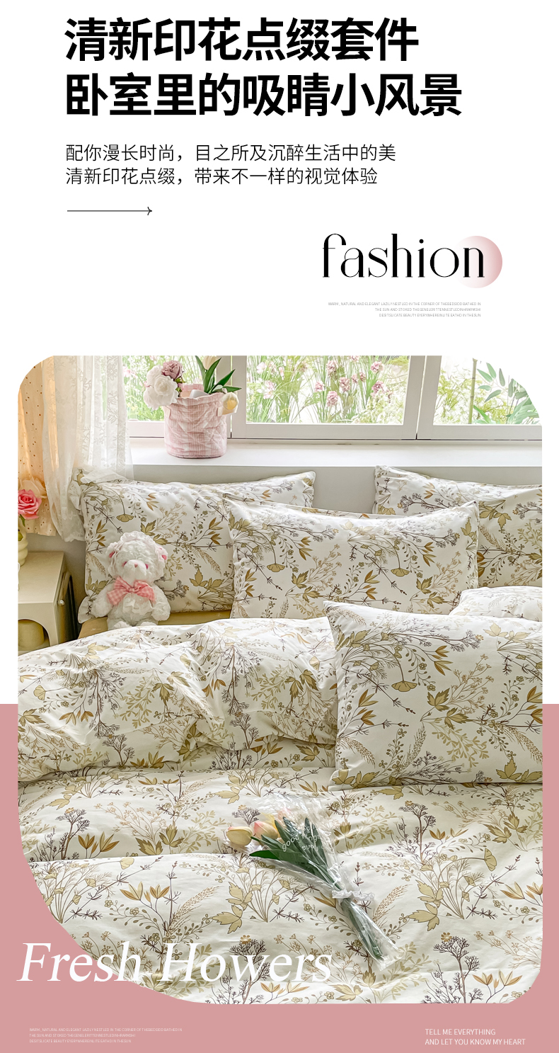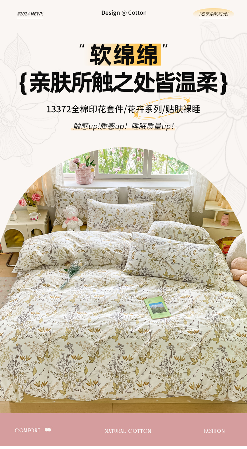 洺兰家居 2025年新款13372全棉印花四件套纯棉小清新北欧风花卉床单床笠款套件 宁夏