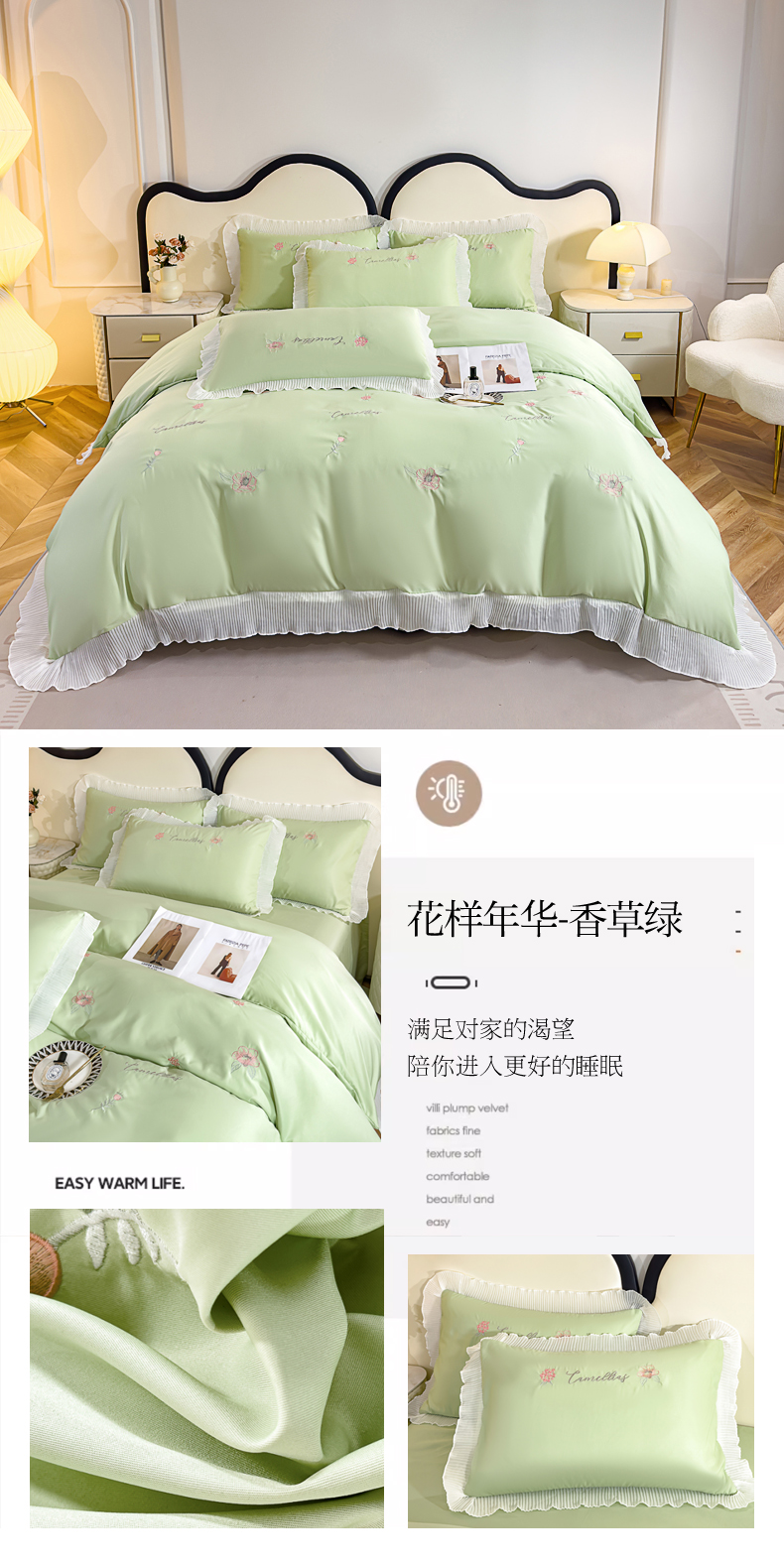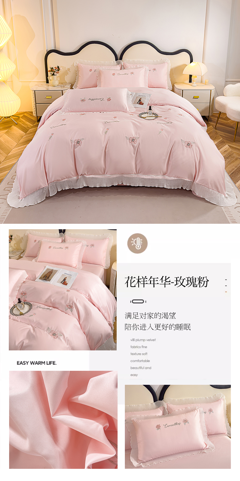 (总)菲儿家纺 2023新款直播高克重纯色牛奶绒平绣花边四件套-黛茜,黛茜-粉,黛茜-黄,黛茜-蓝,黛茜-绿,黛茜-紫