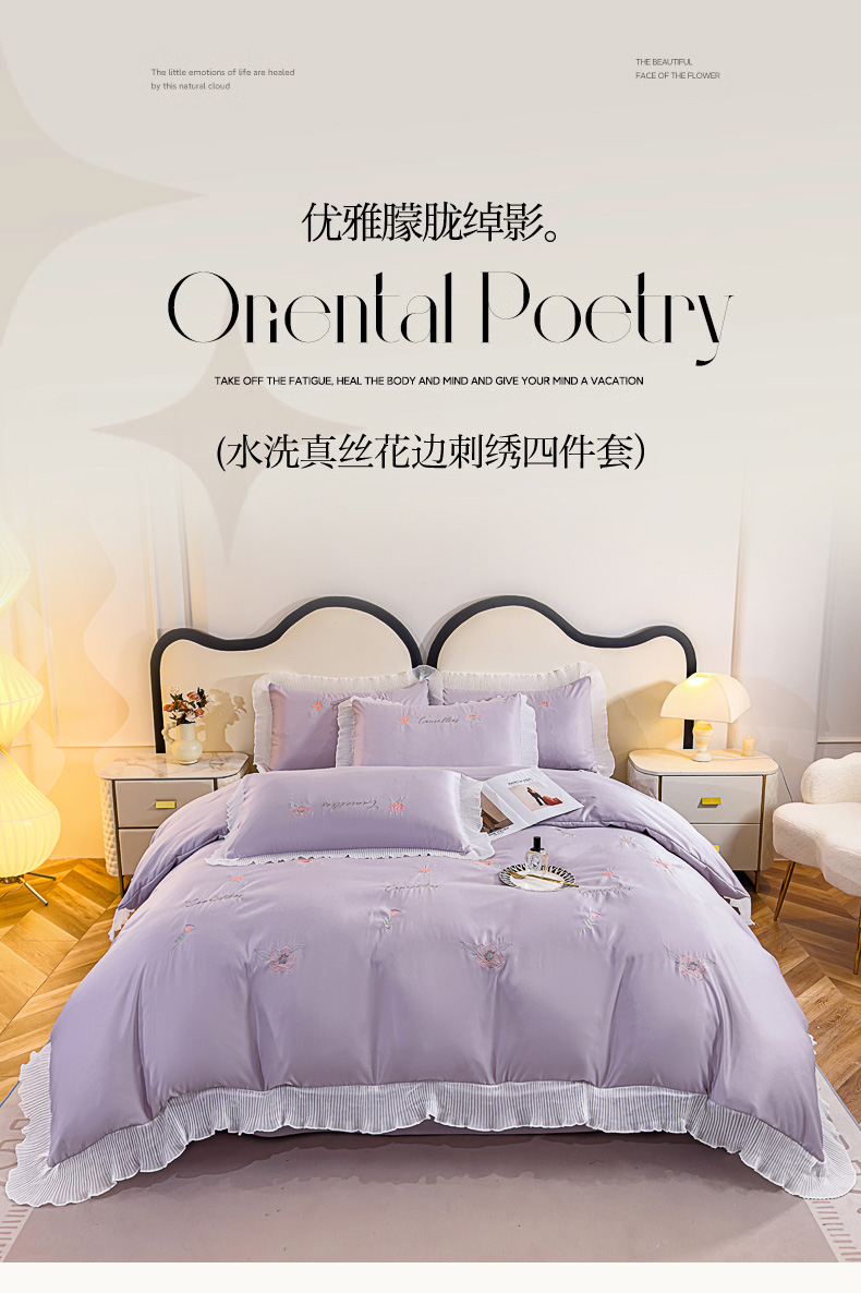(总)菲儿家纺 2024新款水洗真丝花边刺绣四件套-花样年华系列