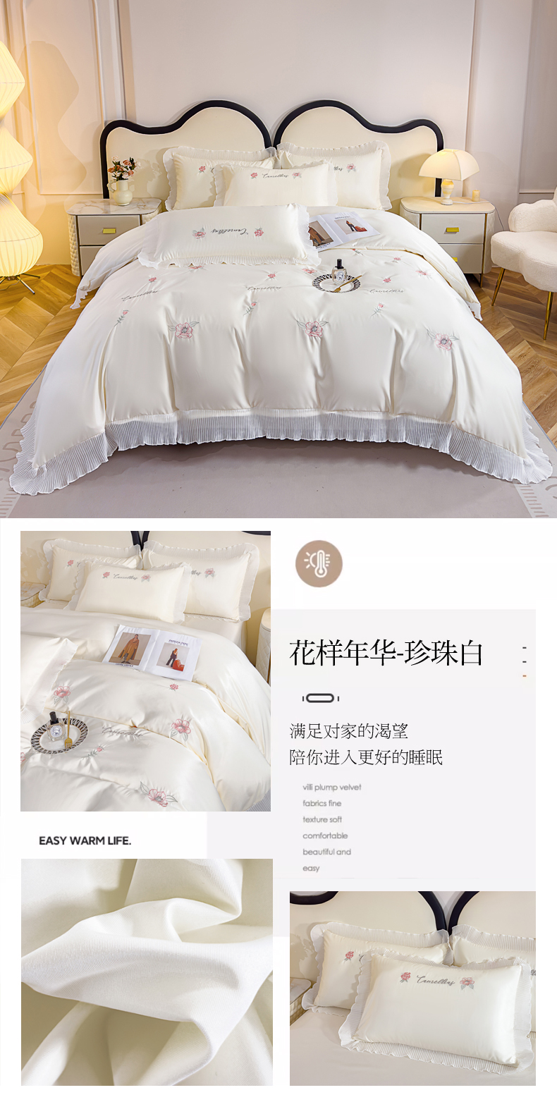 商品名称:(总)菲儿家纺 2024新款水洗真丝花边刺绣四件套-花样年华系列