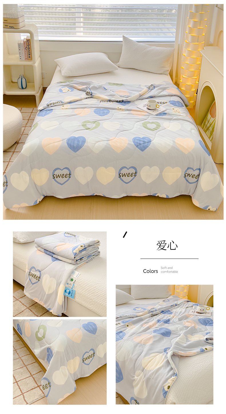 久典家居 2024新款A类氨纶抗菌印花凉感丝夏被空调被 爱心