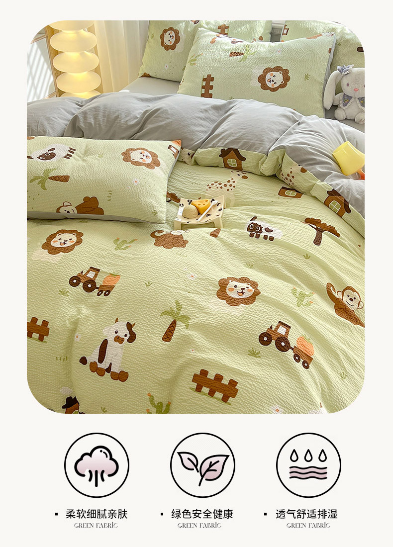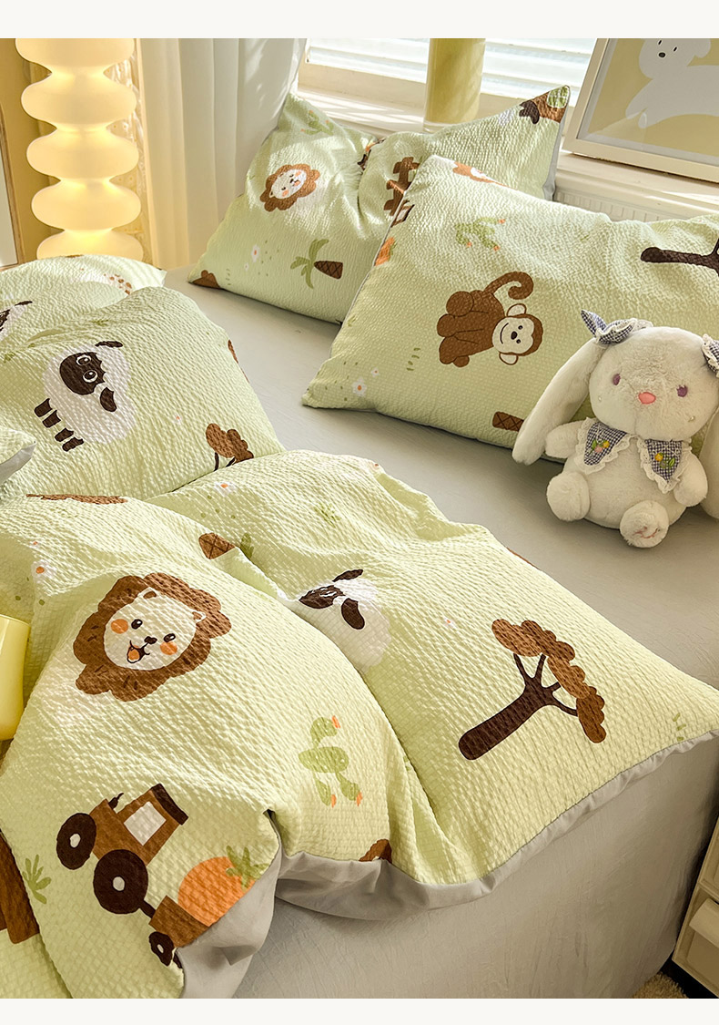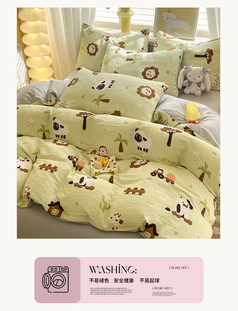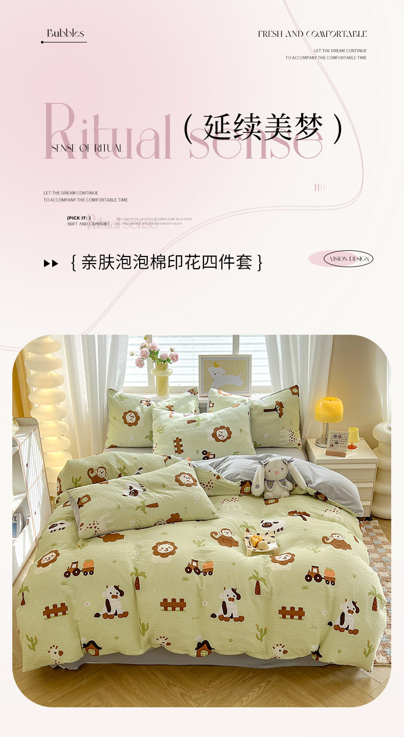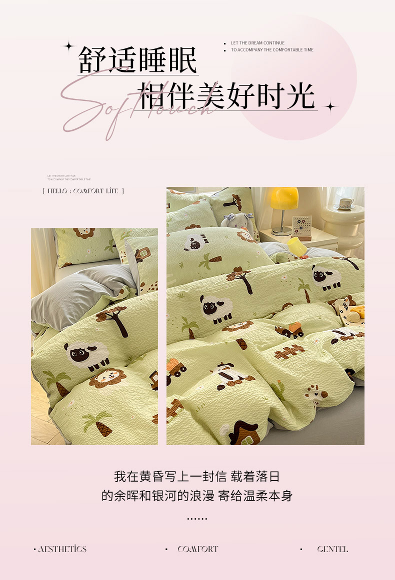当前位置: 91家纺网 > 商品网购 > 床品套件 > 四件套 > 水洗棉四件套 > 妖妖家纺 2024新款有氧水洗泡泡棉印花四套泡芙棉四件套 动物园记