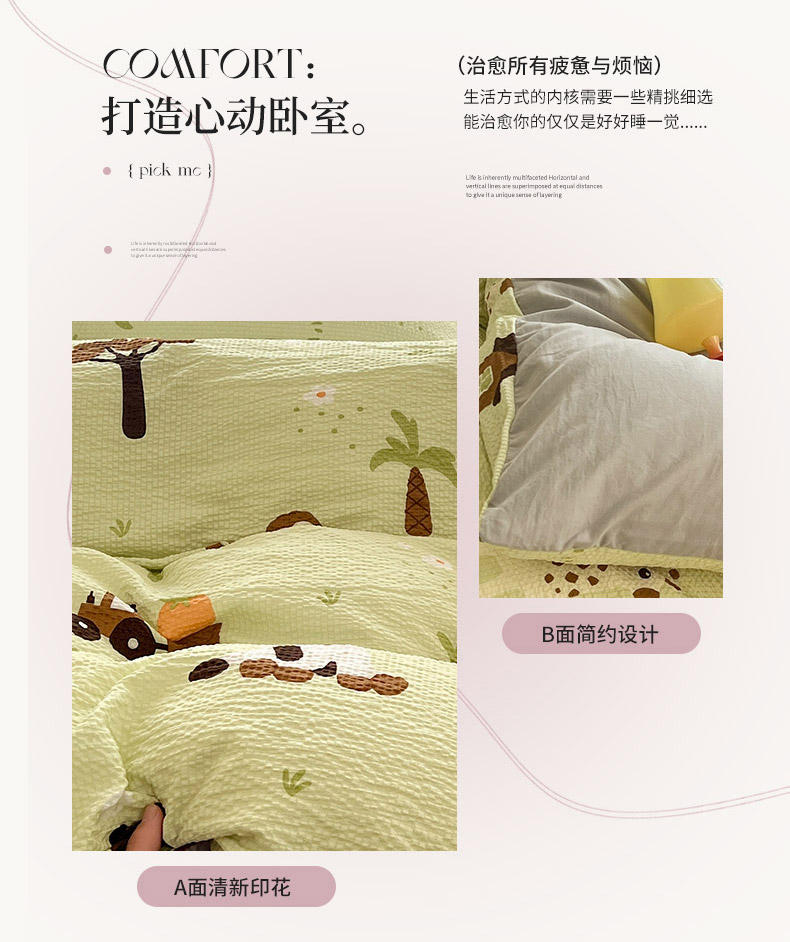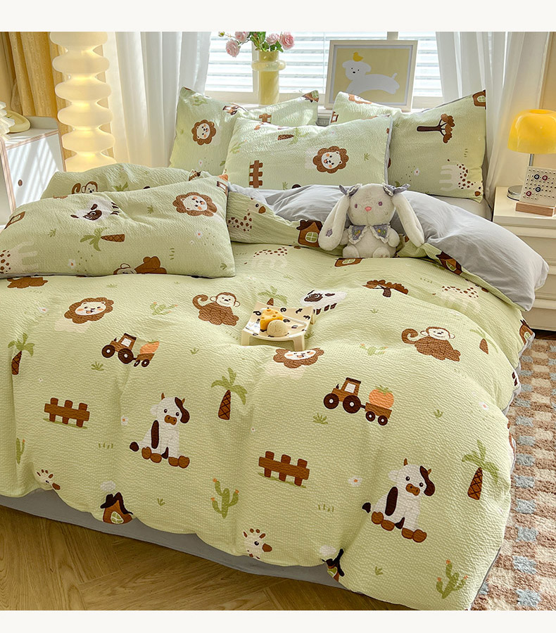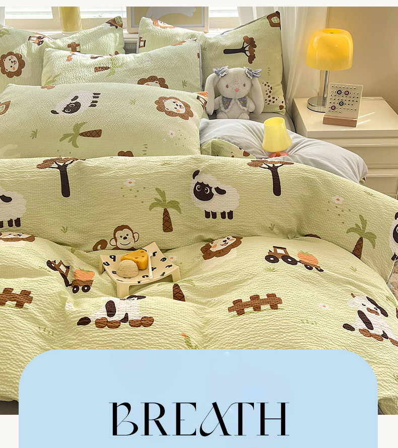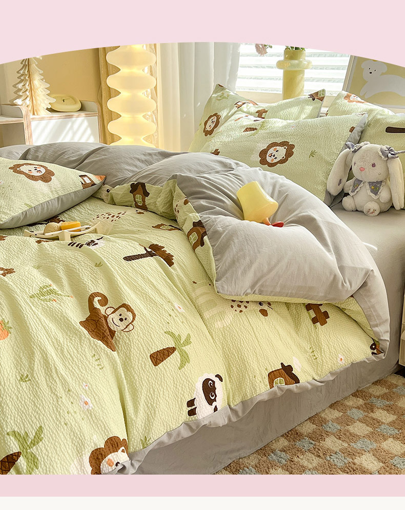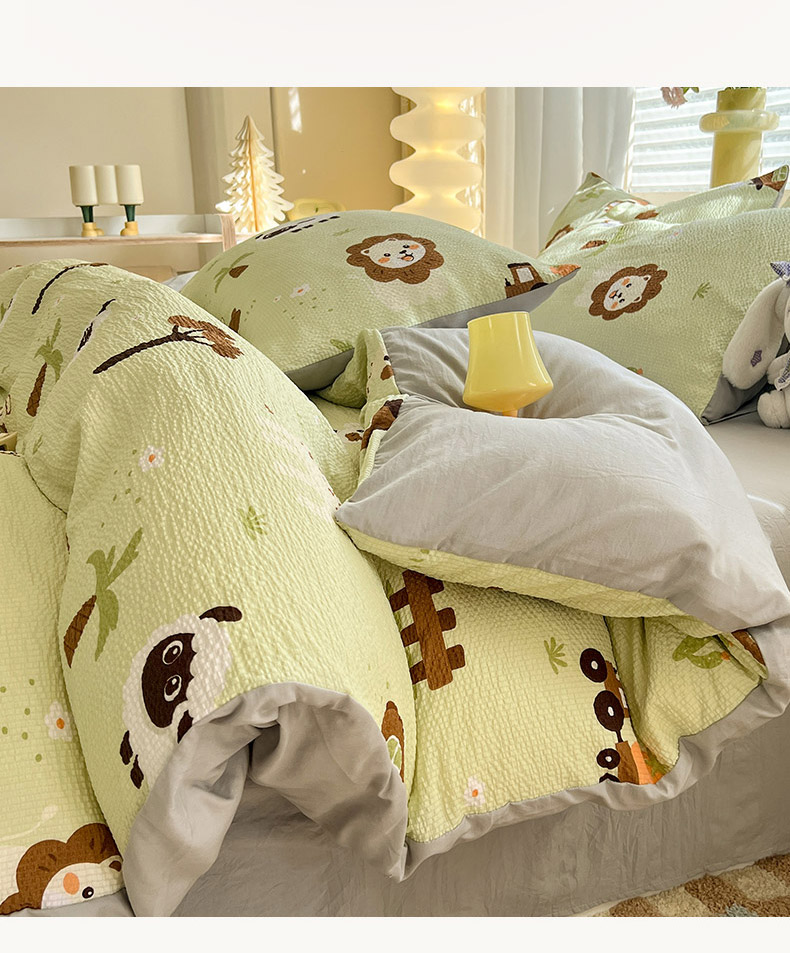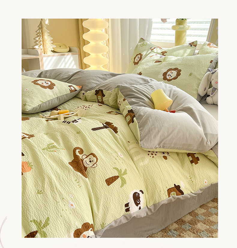 当前位置: 91家纺网 > 商品网购 > 床品套件 > 四件套 > 水洗棉四件套 > 妖妖家纺 2024新款有氧水洗泡泡棉印花四套泡芙棉四件套 动物园记