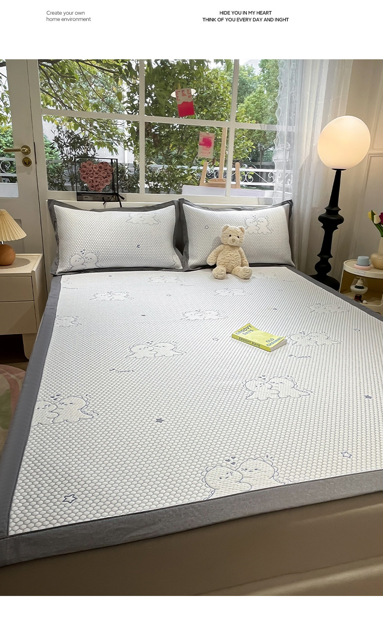 雅居纺家纺 2024新款加厚三明治底提花凉感凉席系列 小恐龙-蓝