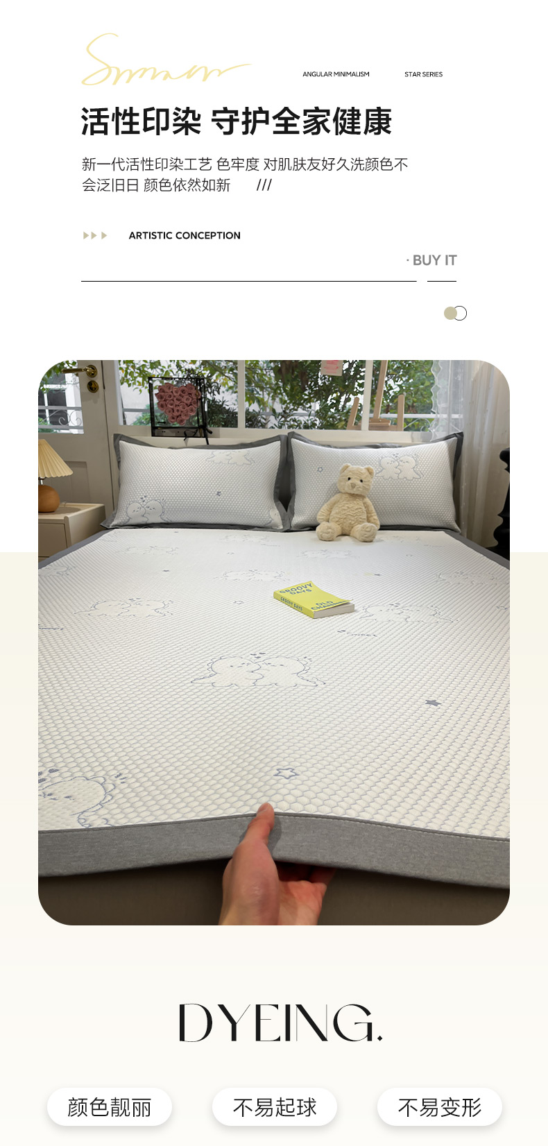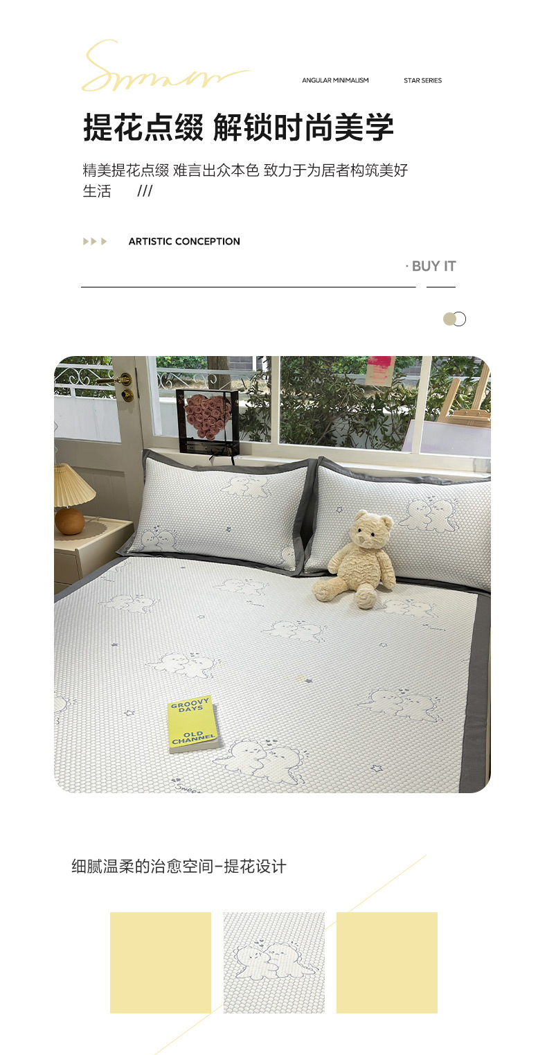 商品名称:雅居纺家纺 2024新款加厚三明治底提花凉感凉席系列 小恐龙-蓝