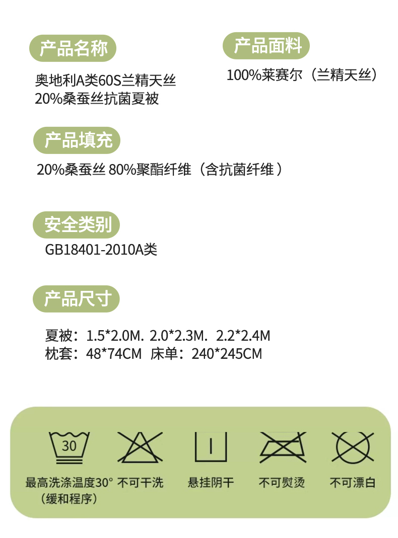 商品名称:(总)头等舱 2025新款奥地利A类60S兰精天丝20%桑蚕丝抗菌夏被(配无纺布包装)